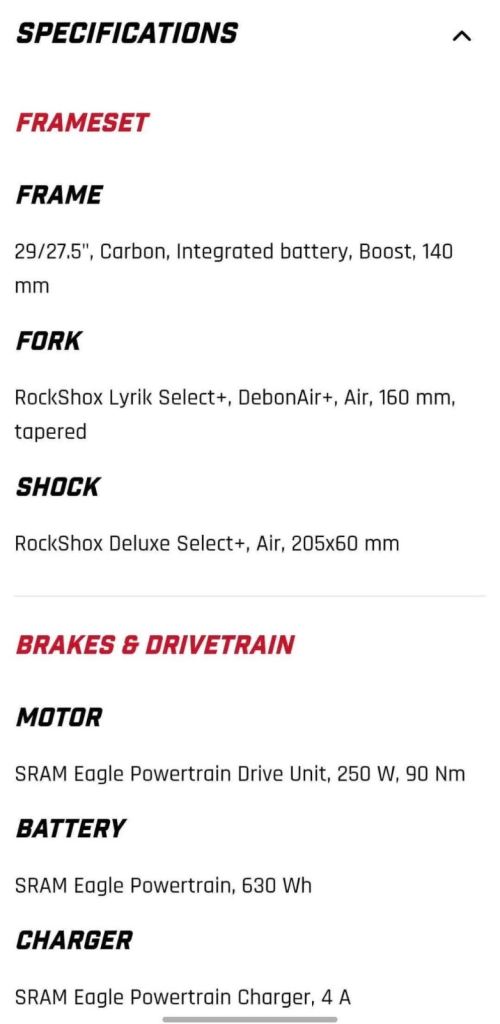 Like our other latest generation eMTBs, the MXC 4 is equipped with the state-of-the-art SRAM Eagle Powertrain drive unit featuring a 630Wh battery and AXS Bridge Display mounted in the top tube.