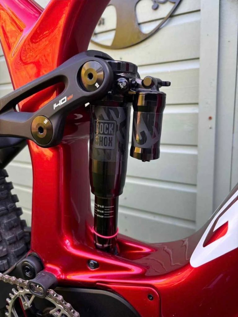 This rig keeps things in the family with SRAM 4-piston DB8 brakes on 220/200mm rotors and 12-speed GX Eagle groupset. Suspension comes via a 160mm Lyrik Select+ fork and Deluxe Select+ shock.