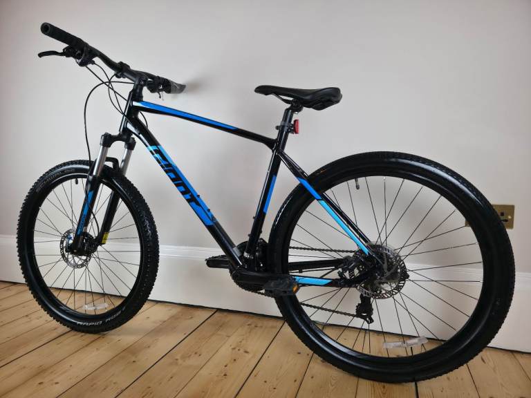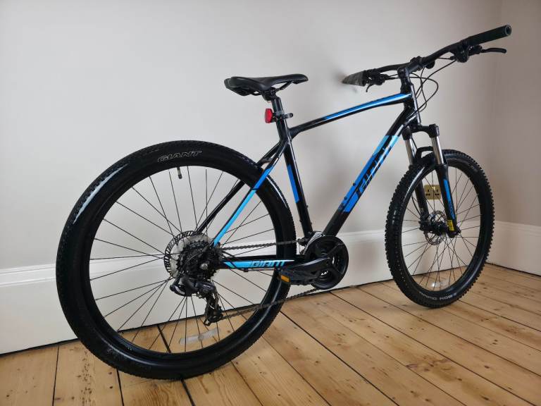 Giant ATX 2 mountain bike in a large frame. The bike is in excellent condition, fully cleaned and ready to ride away. Finished in a striking black with blue detailing.