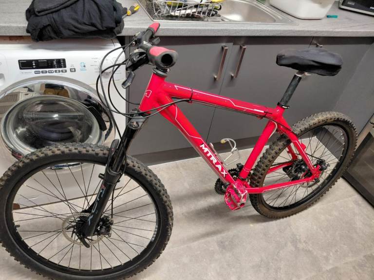 Has alloy frame 18". Front suspension forks. Shimano gears x24. Disc brakes