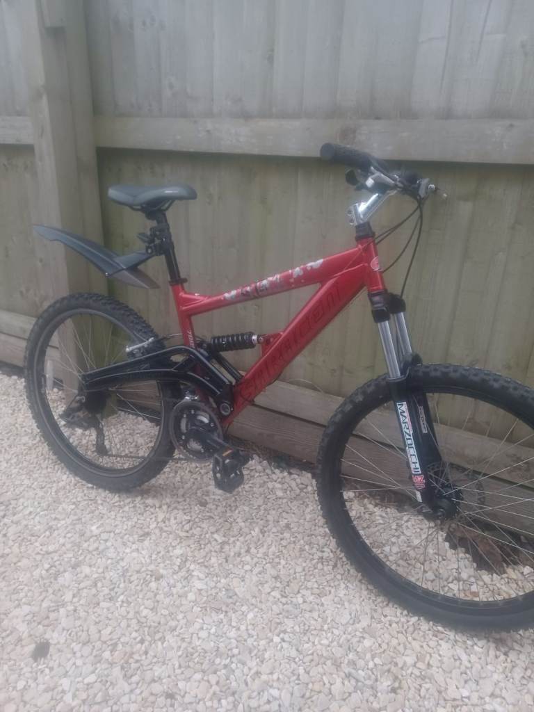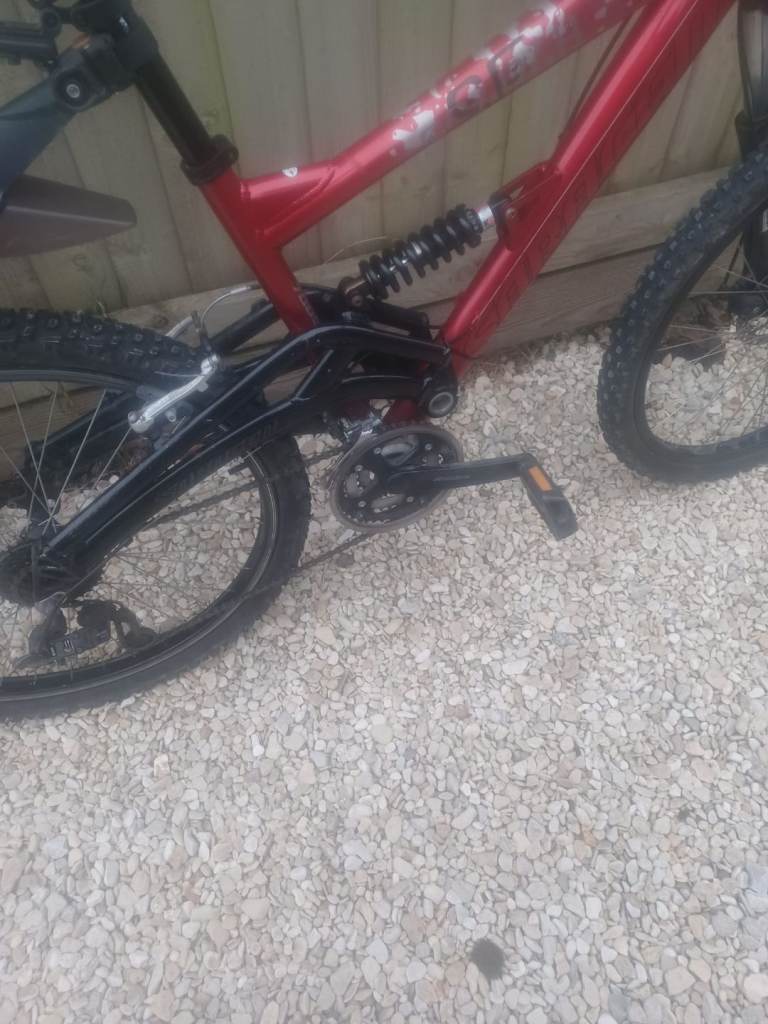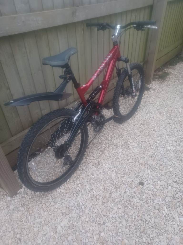 A Saracen full suspension mountain bike. Everything working as it should great condition. Ideal for ages between 10-15. Colour is red with some light scratches but overall very good condition ready for some action