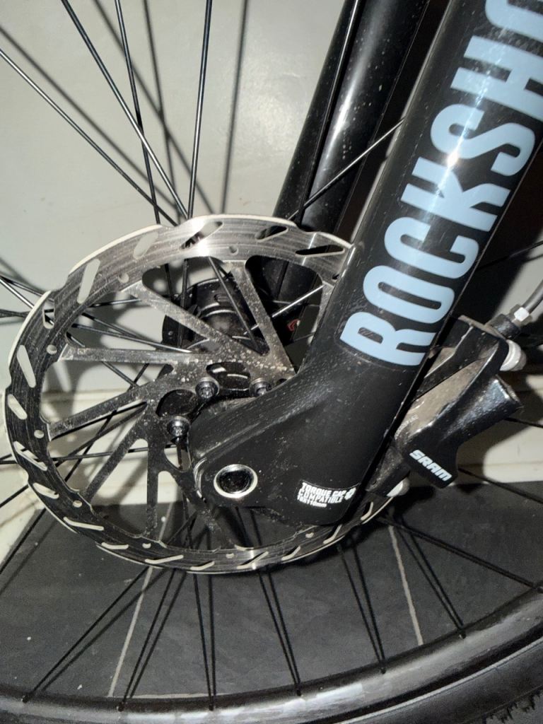Brakes & Stopping Power: SRAM DB6 four-piston hydraulic disc brakes with 180mm front and 160mm rear rotors.