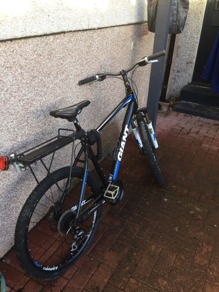 Giant mountain bike serviced by Dryburgh Cycles Dingwall two months ago new chain,cassette and derailleur, comes with rear light, pannier, brand new heavy duty lock