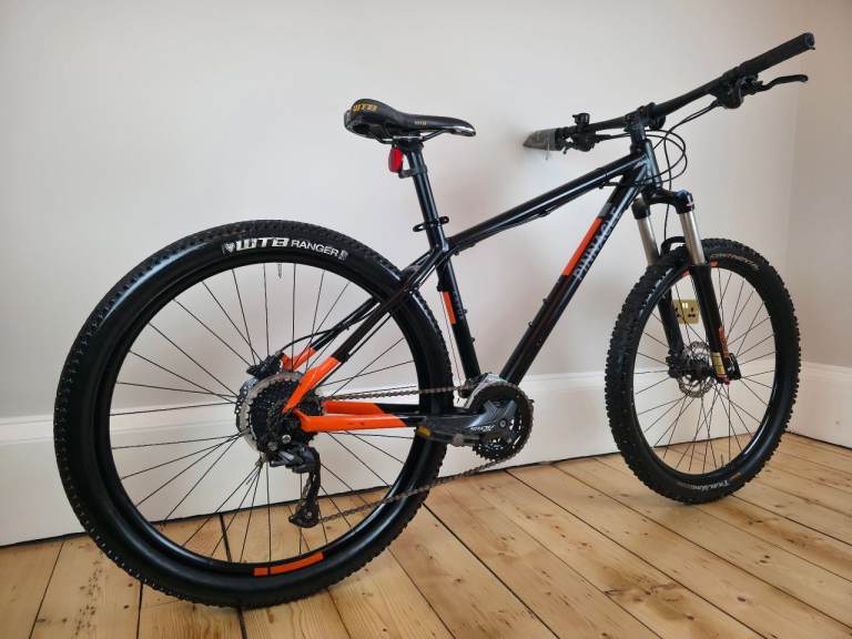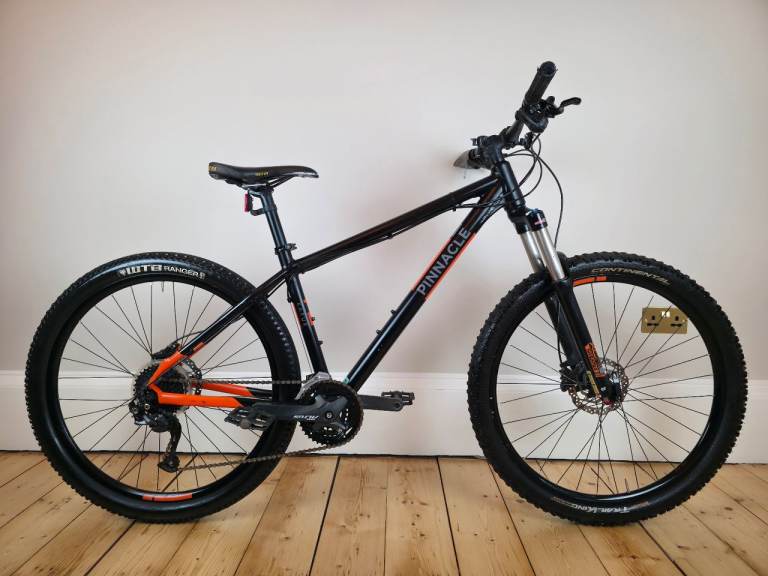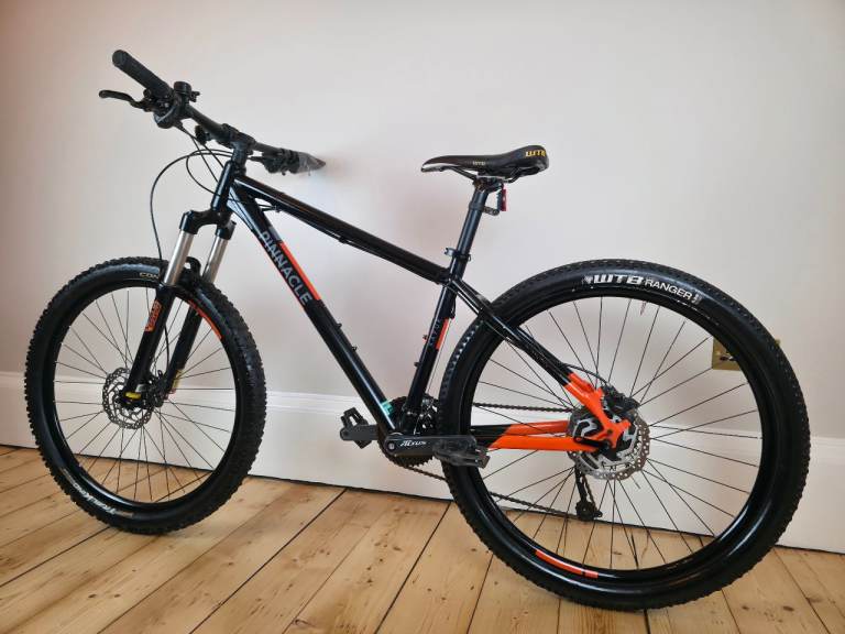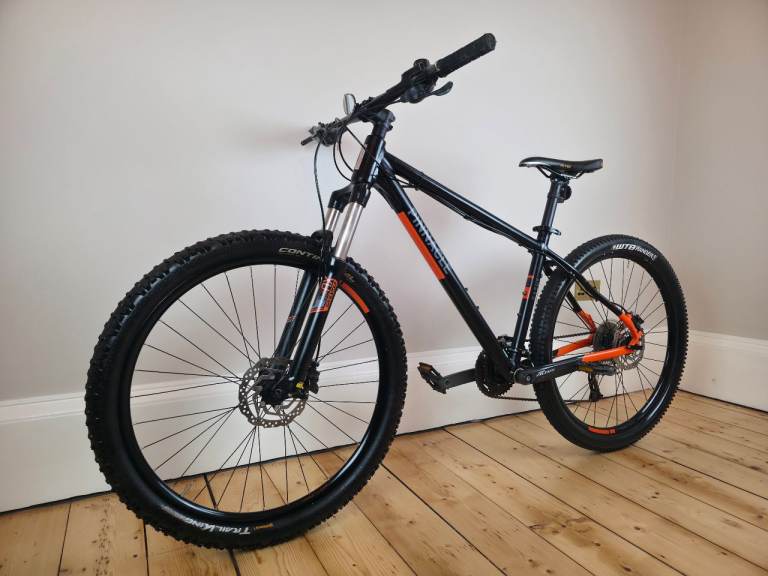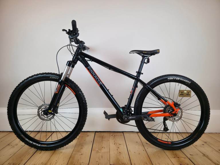 Pinnacle Kapur 2 mountain bike in a medium sized frame. Finished in a stealthy 😈 black with orange detailing.