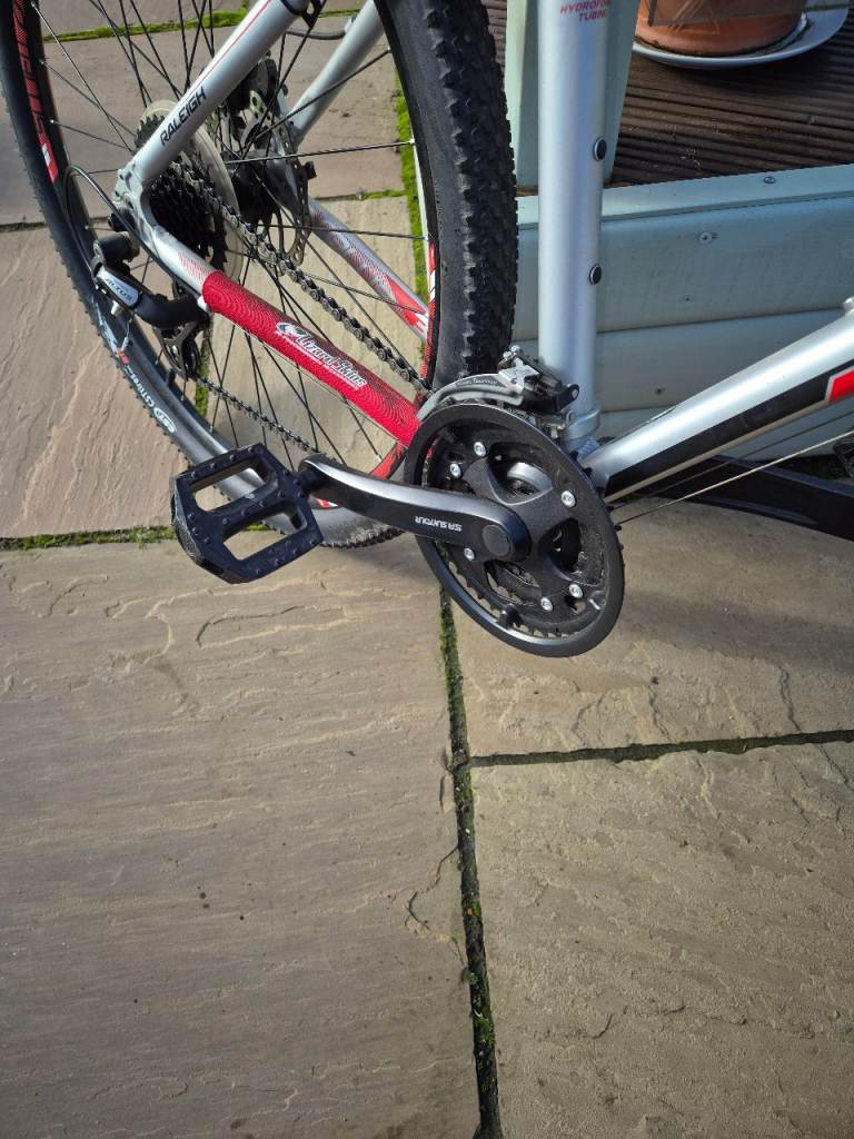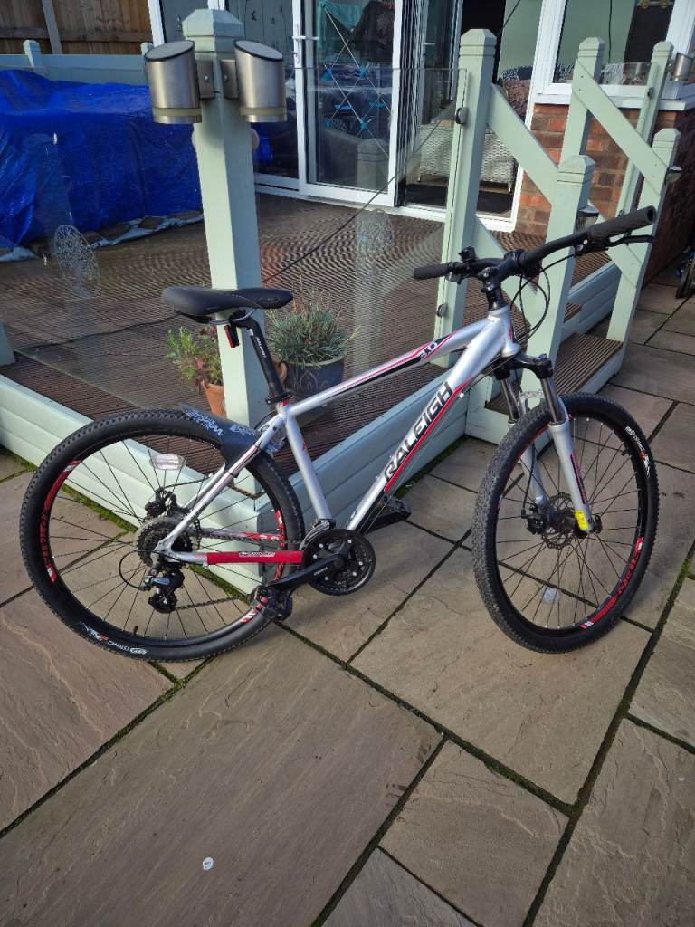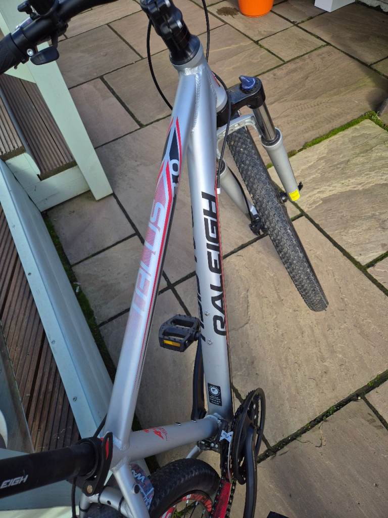My Raleigh mountain bike, I've not ridden it very much, i should have bought a street bike instead. Beautiful condition, medium frame size 27.5 inch wheels, 21 speed Shimano gear sets.