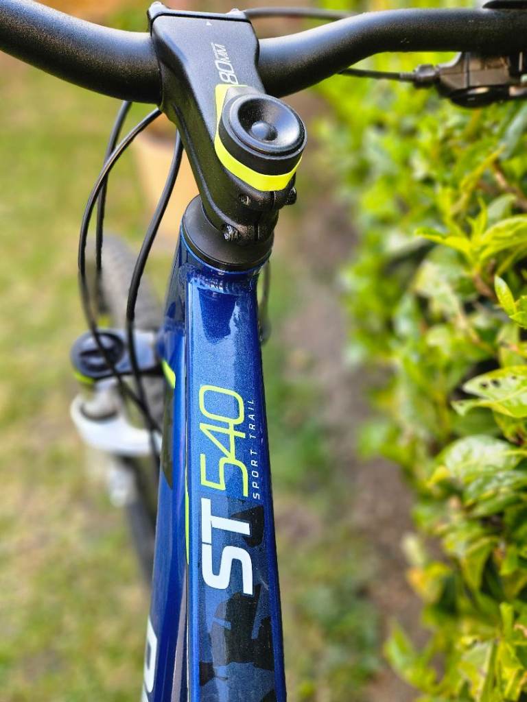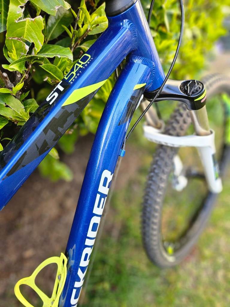 Decathlon Rockrider ST540 mountain bike in very good condition. About 6 years old but barely used so minimal wear. Size L. Wheels 27.5". 2 x 9 speed gearing. Hydraulic disc brakes. 100mm travel front forks.