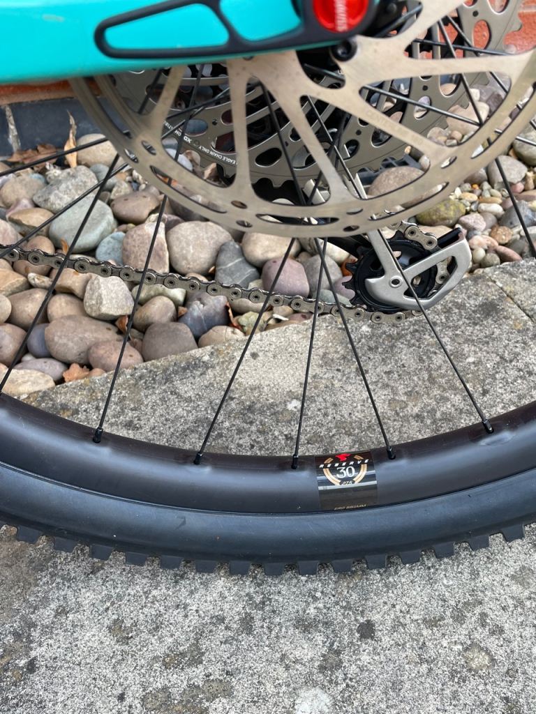 Santa Cruz Reserve 30 Carbon DT Swiss 350 wheels with 2.5"/2.4" wide Maxxis Minion tyres