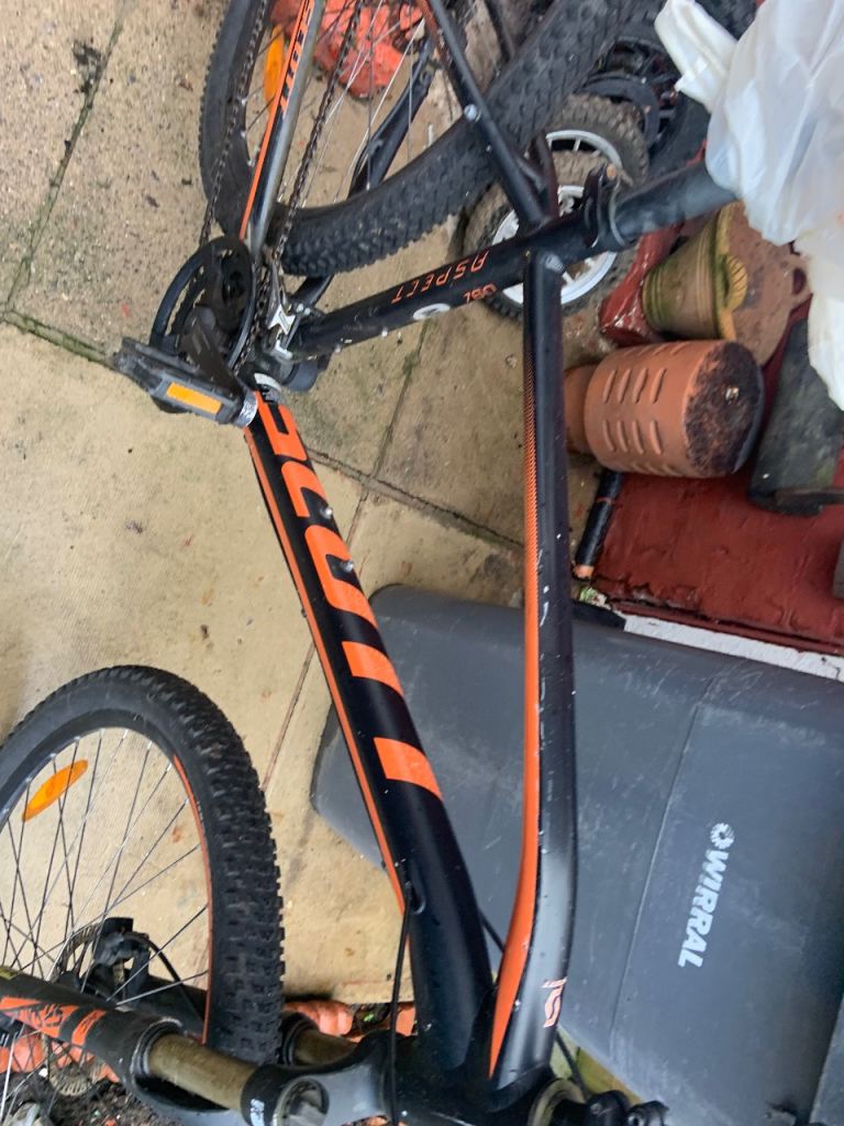 Scott mountain bike has 27 inch wheels and disc brakes its medium size frame and to let you know I am 6ft tall and ride it ok with no issues this is relist due to someone messing me around not turning so if want it it stay on till youve paid for it and it’s cash on collection yes £50 will be clean ready as got bit of Dust on frame but ha the price is right so grab a bargain