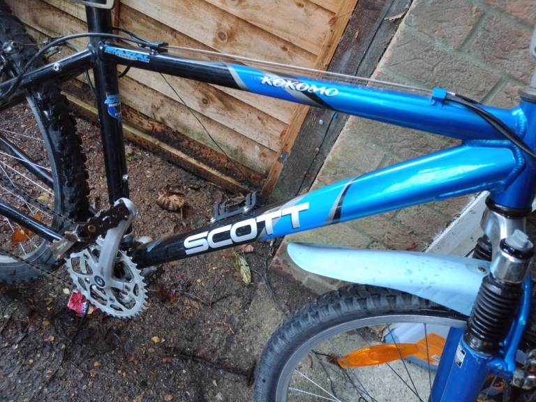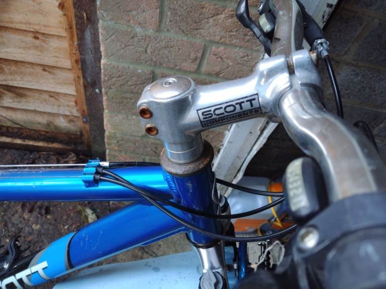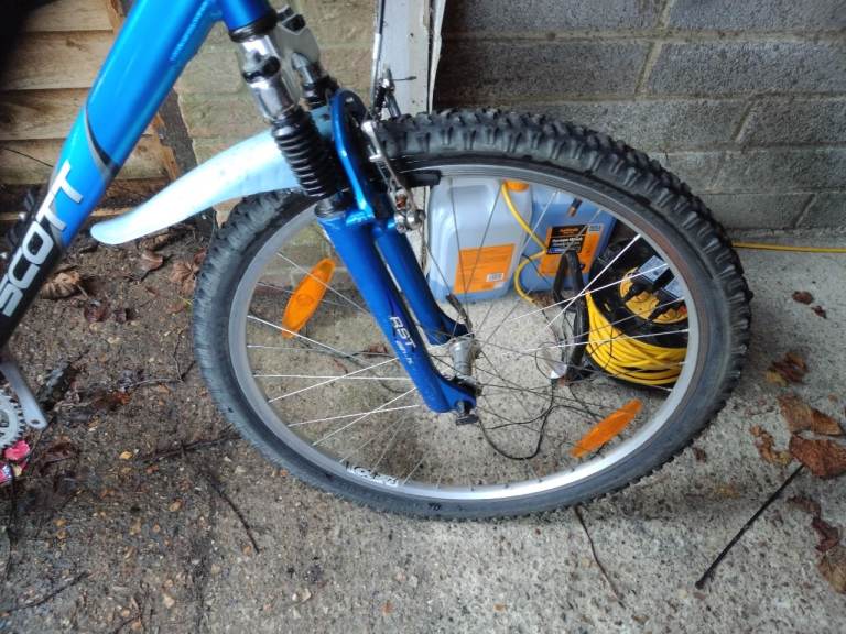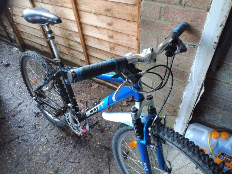 Scott mountain bike with 26 inch alloy wheels with good tyres with 18 Inc frame 24 gears front suspension with long saddle stem and come with brand new handle bar grips that need to be fitted in very good condition good working order