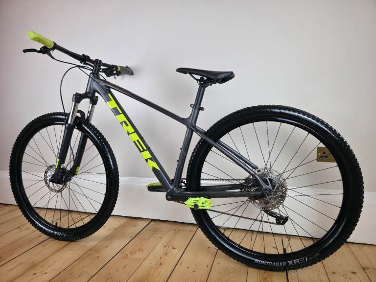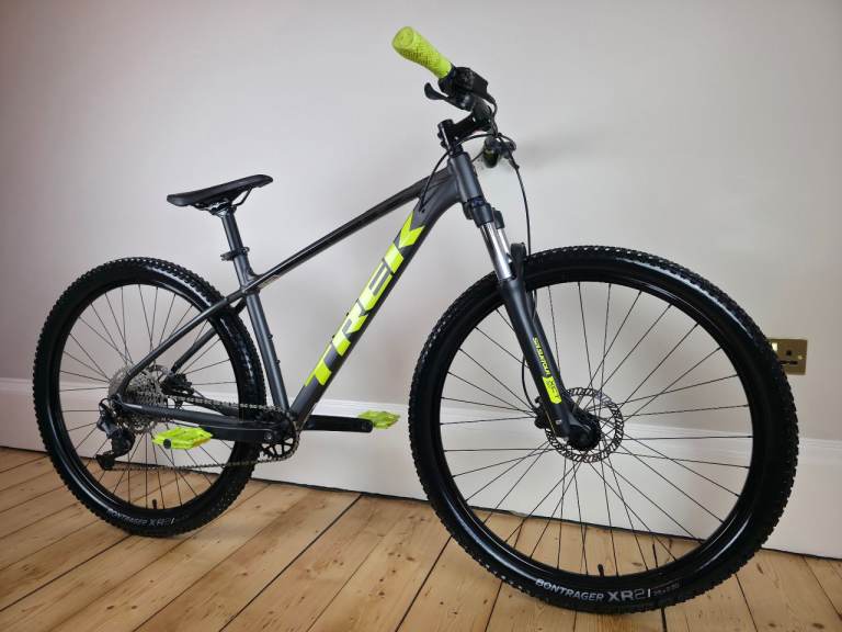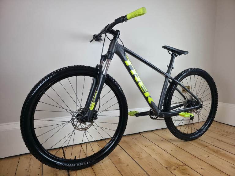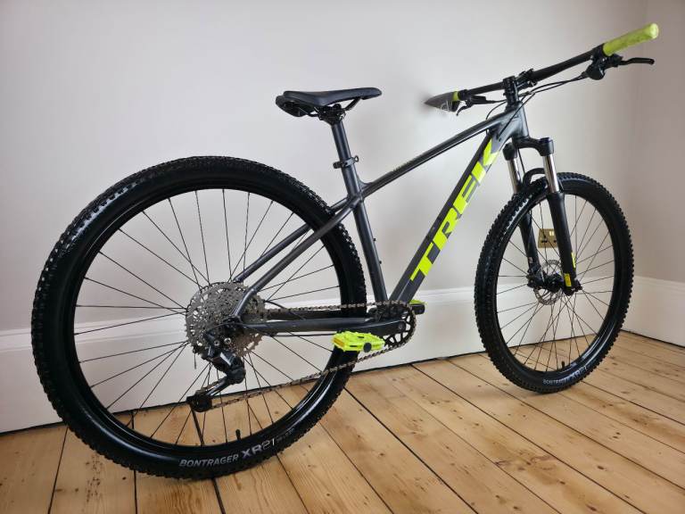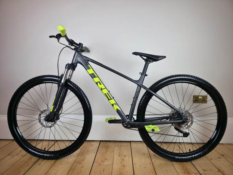 Trek Marlin 6 [29er] mountain bike in a large sized frame. The bike is in excellent condition and ready to ride away. Finished in a gunmetal grey colour with lime green detailing.