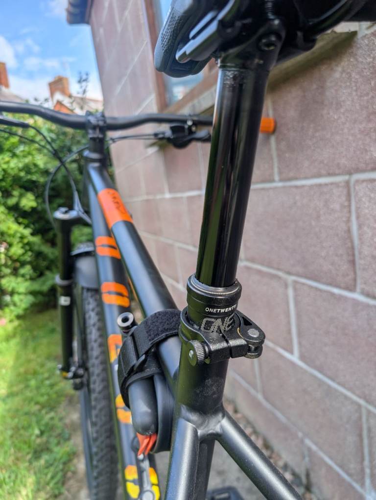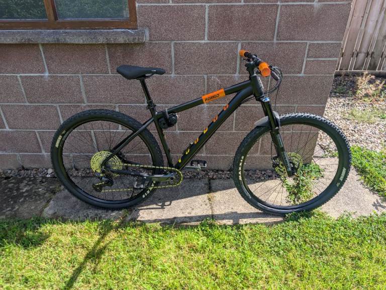2024 Voodoo Bizango frame size L. RRP was £700. Was used a hand full of times as can be seen by the new tyres. It has a few extras like a one up components V2 dropper post with a wolftooth lever. It has HT pedals and a new more comfortable saddle. Also changed the grips and a few bit with orange peatys bike bits. Also is fitted with a peatys magnetic water bottle holder ( new bottle needed ) any questions plz just ask. Asking price is reasonable considering the extras one the bike and the condition.