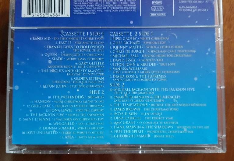 1990'S compilations of classic & popular Christmas songs. 2 x double sided audio tapes in original box and in perfect condition.