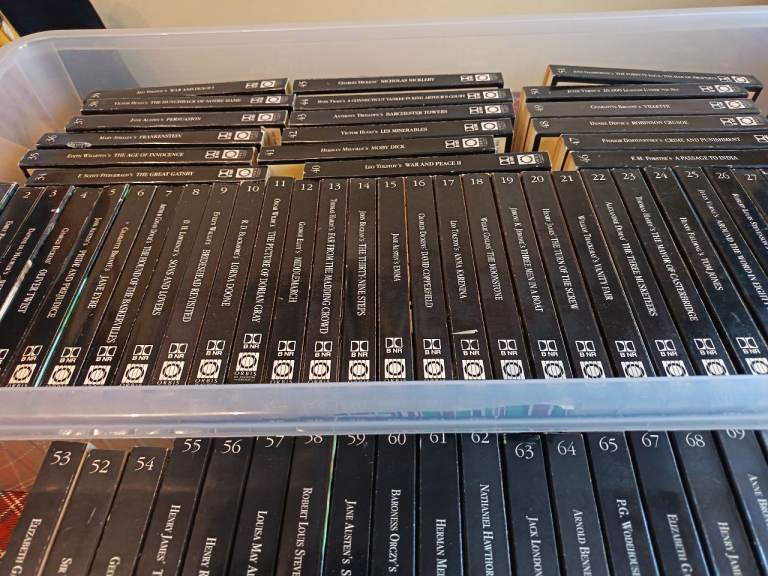 Nearly full set of talking classic cassette tapes, over 70. Number 66 missing. Played once. Comes with magazines