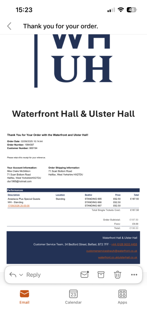 Golden Circle ticket to London show on the 16th. Can’t go anymore as I will be on holiday