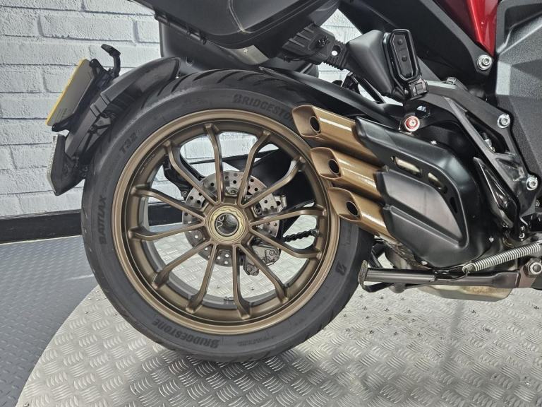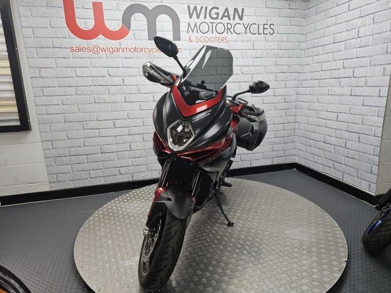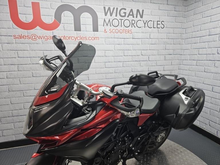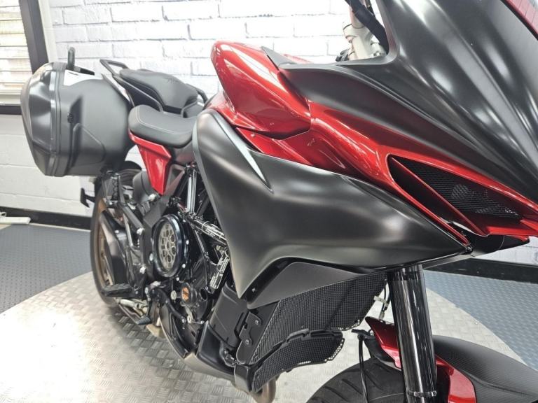 2022/72 MV AGUSTA TURISMO VELOCE LUSSO SCS E5 75th ANNIVERSARY \'LUXURY\' VERSION OF THE POPULAR SPORTS TOURER! SUPERB MV SCS (SPECIAL CLUTCH SYSTEM), Exclusive features Titanium Valve gear. All new dashboard TFT 5.5” colour display- cruise control- Bluetooth GPS- heated grips-Mobisat tracker MV RIDE App for navigation mirroring plus engine, suspension & rider aids setup- launch & front lift control. The Turismo Veloce is now fitted with the SCS Clutch that enables the rider to use a manual gearbox but without using the clutch lever. Once you\'re in gear, the \'special clutch system\' will do the rest-a revelation to ride, MV have really raised the bar for true sports tourers. With 110hp and a massive 80Nm of torque on tap from its 800cc punchy triple engine. Features include Electronic suspension, fly-by wire throttle, 8-level Traction control, heated grips, centre stand, ABS, Sat-Nav, 4 engine map options, cruise control, speed limiter, fuel gauge, up/down quick shift, side luggage cases, adjustable screen, and the SCS clutch system (Smart Clutch System). All vehicles are HPI checked and will receive a full pre-delivery inspection plus 3 months warranty all our used bikes for your complete peace of mind. We offer optional 15 months Autoguard warranty and roadside assist packages from £249. We offer low-rate finance options. UK Nationwide Delivery. Secure this stunning bike for as little as a £99 deposit, give our team a CALL NOW 01942 491491 or drop us a message on WhatsApp [Phone number removed]... For extra pictures or a full walk round video of this bike just call, To view all of are available stock please visit our website [Website URL removed] we have over 400 bikes in stock, Part exchange change welcome motorcycle, car or van