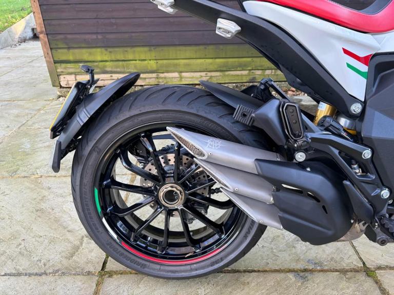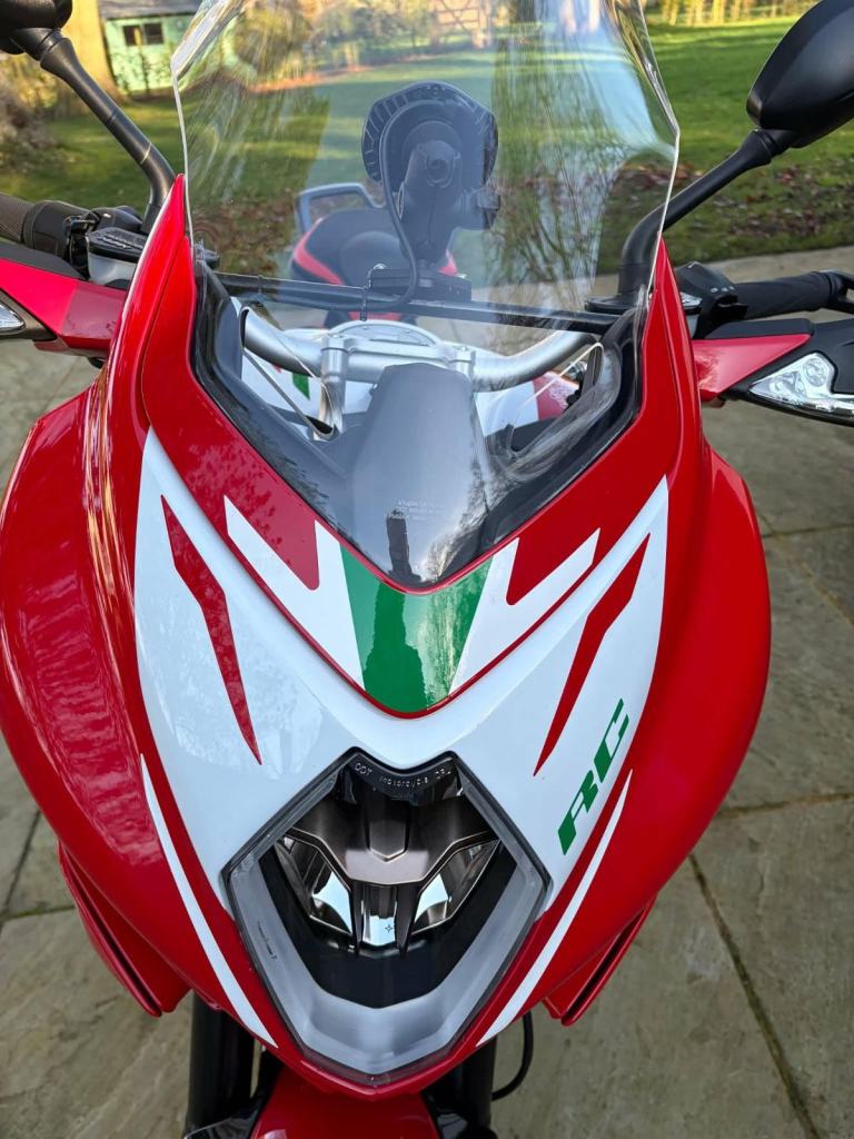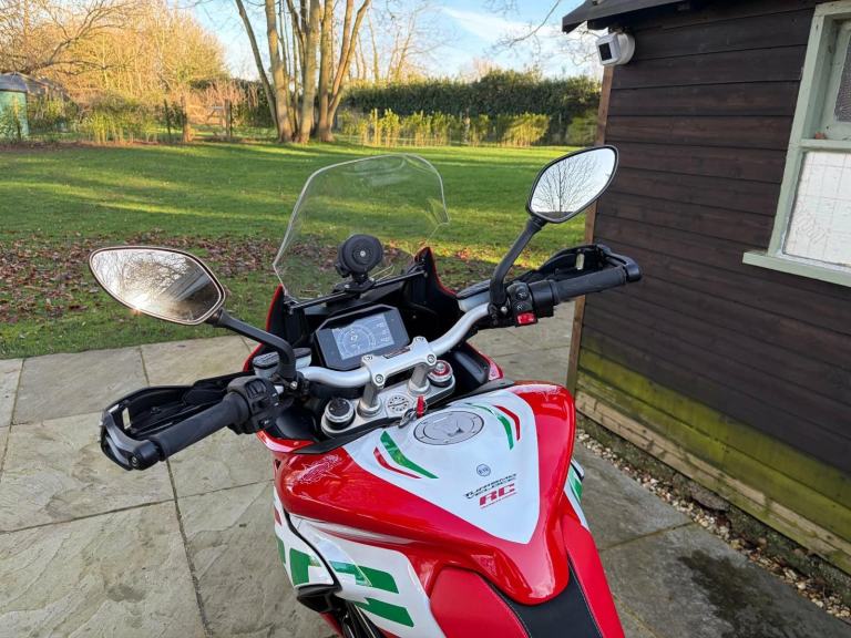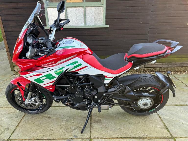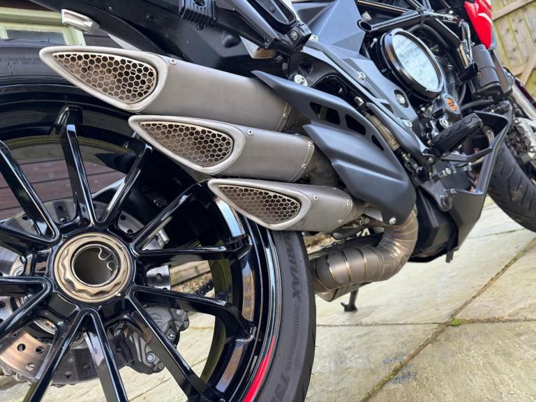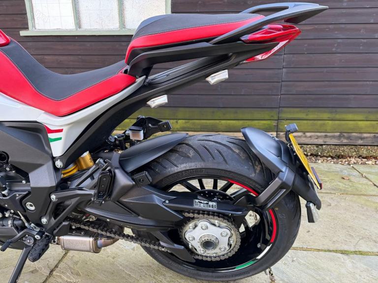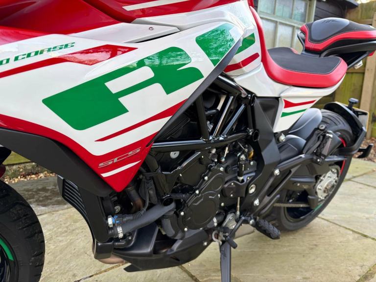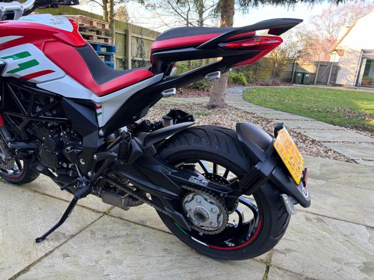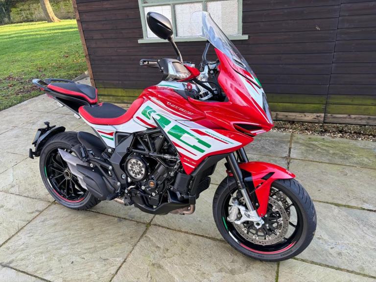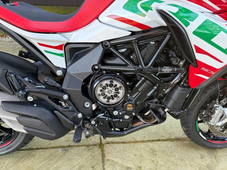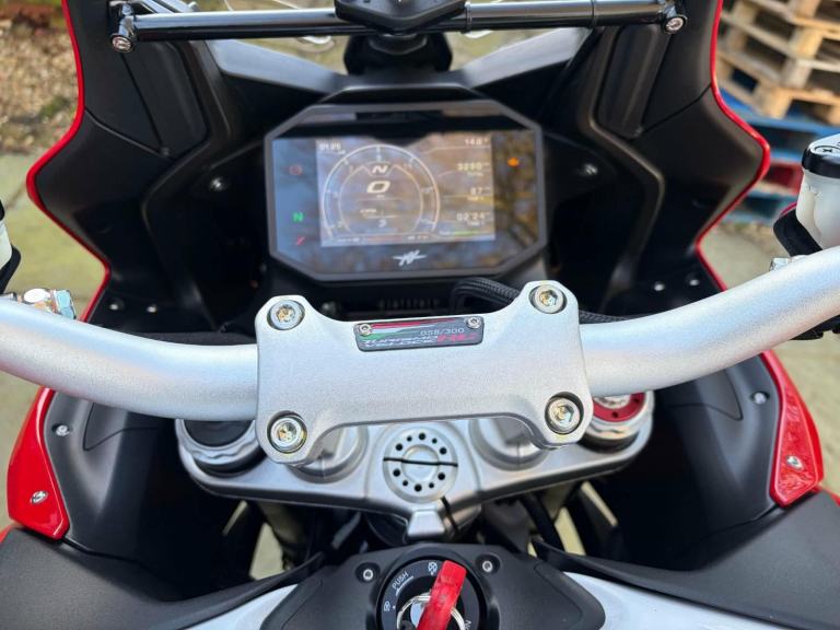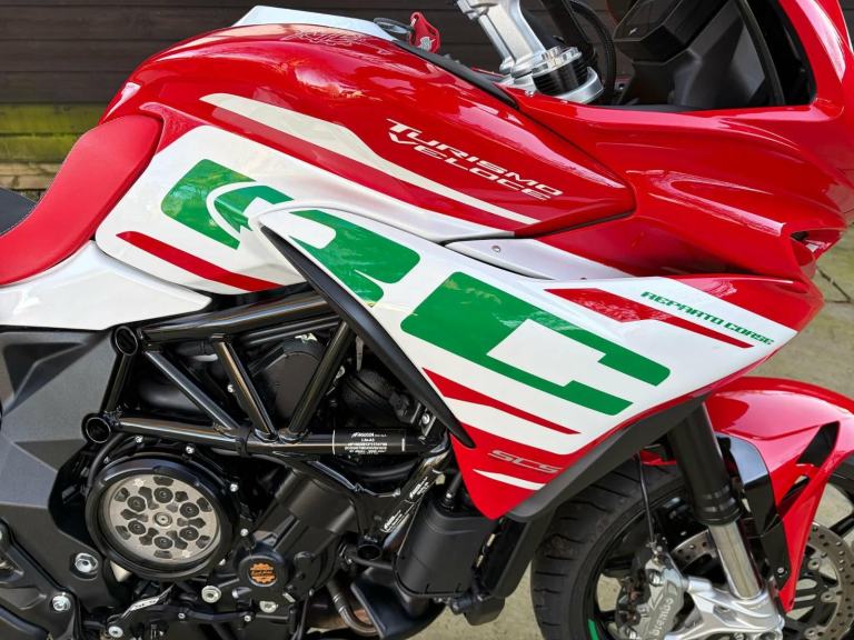 Here we have for sale an MV Agusta Turismo Veloce RC SCS, number 58 of 300 in overall excellent condition. As shown, this bike is fitted with factory panniers, aftermarket factory titanium exhaust (+ original), satellite tracker, it has also been lowered by 2 inches with Lusso Racing Links. Both tyres are in good condition. We have the V5, warranty booklet shown in the pictures, along with a plaque to verify the edition number and letters from MV Agusta. The first MOT is due 29.05.2027. Please note: This is a customers bike and not kept at our premises so an appointment to view is required, the bike also has a private plate that will be removed prior to the sale.