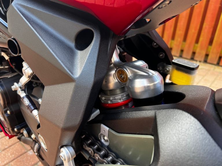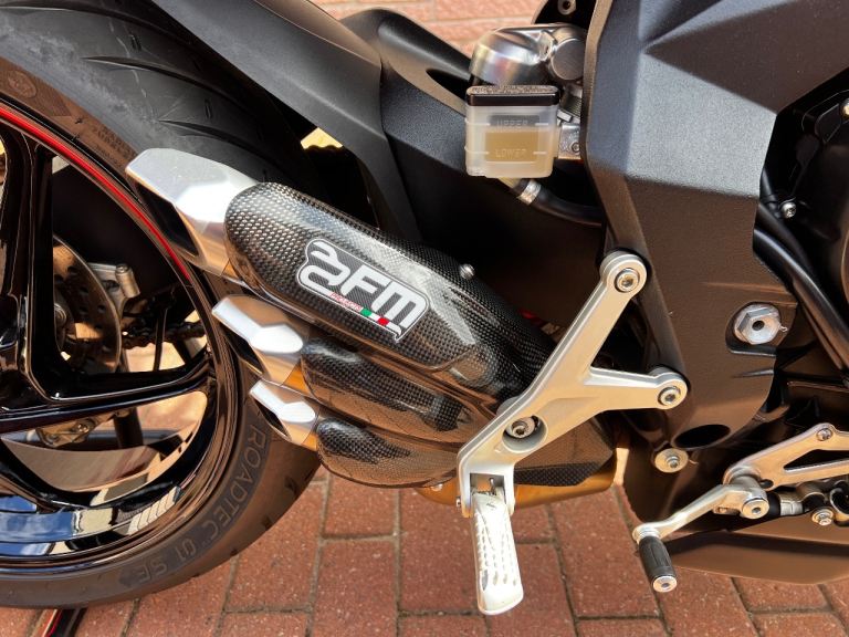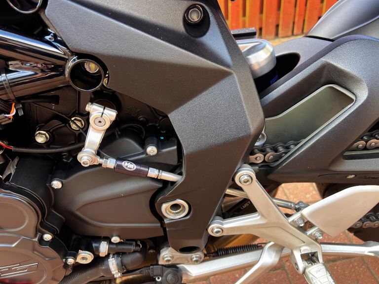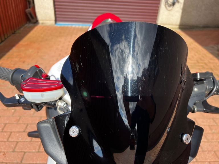 Extras include FM Exhaust, HM (moto GP) Quickshifter, Volcano seat, tail tidy, fly screen, bar end mirrors, mini indicators, heated grips. Private plate included MV16XXX. All original parts available.