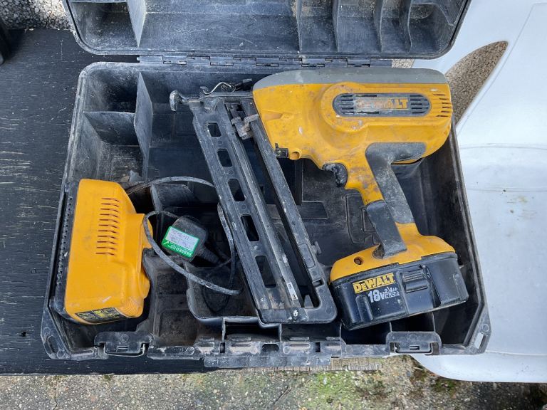 Cased Dewalt DC618 18v Cordless Nail Gun with Battery and Charger.