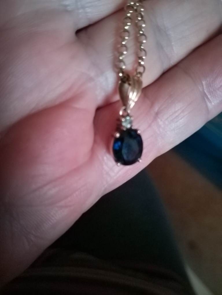 A Fully Hallmarked 9 Ct gold vintage Belcher chain of 20 inches in length together with a 14 ct gold pendant with a large green/blue Sapphire about 1 carat with a further Diamond of about 5/6 points the 2 together look very nice indeed . The total weight is 5.63 grams . Viewing is welcome or i can post by next day secure post as extra. Thank you