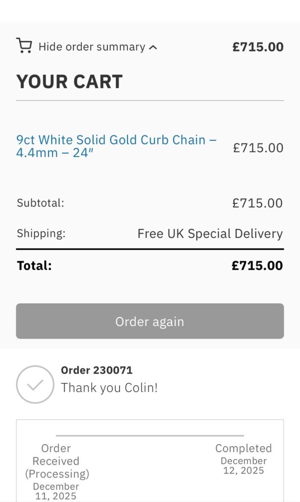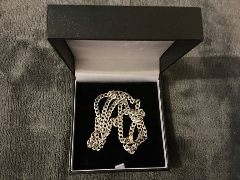 Worn only a couple of times since Xmas a 9ct White Solid Gold Curb Chain – 4.4mm – 24″ approx 12.3g
