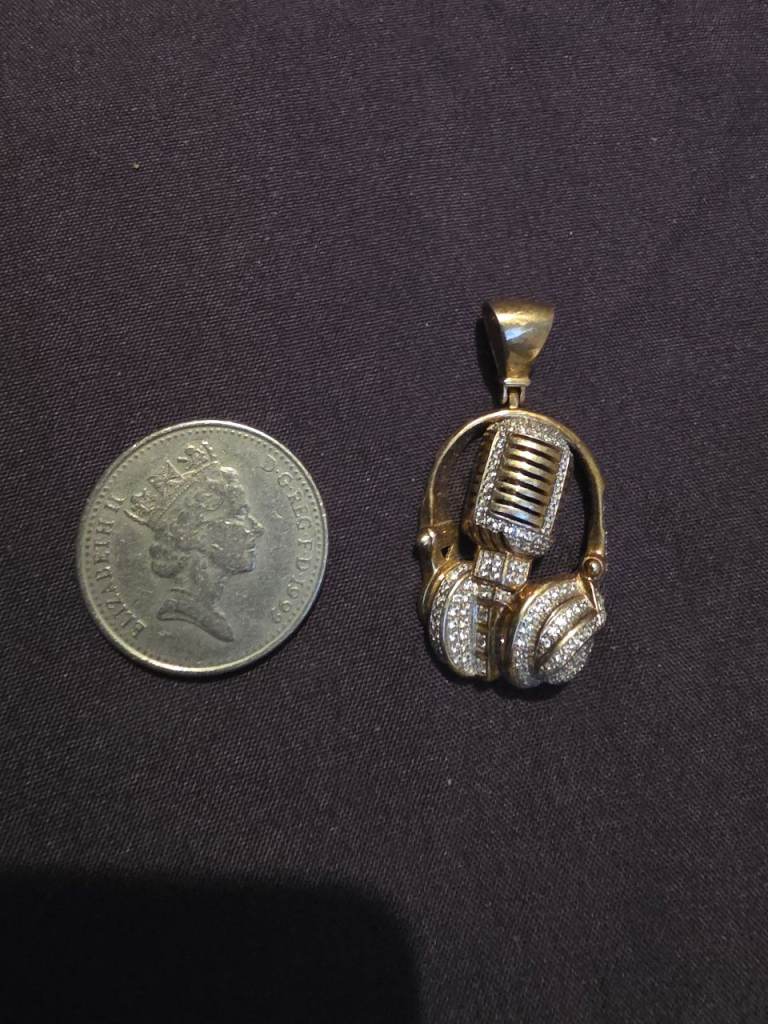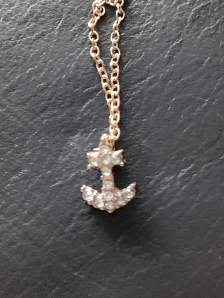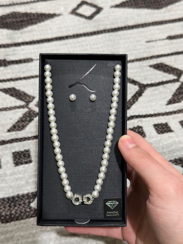 Includes necklace and studs.