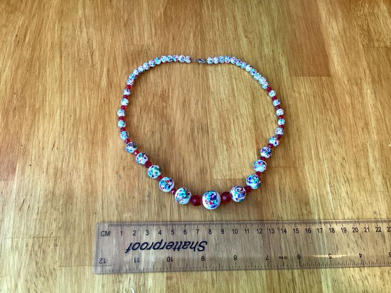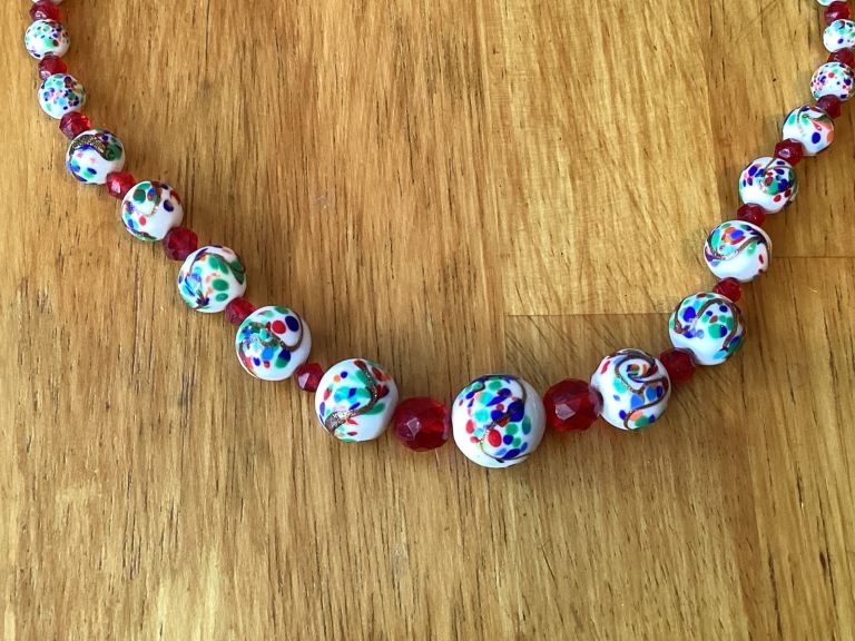 For sale a vintage decorative coloured glass costume jewellery Necklace. The necklace which is all glass is in very good clean undamaged condition ready to be worn and would make a lovely gift or present. £6 with cash on collection from the Milton Keynes area. Can also post where the buyer pays the post and packing charge.