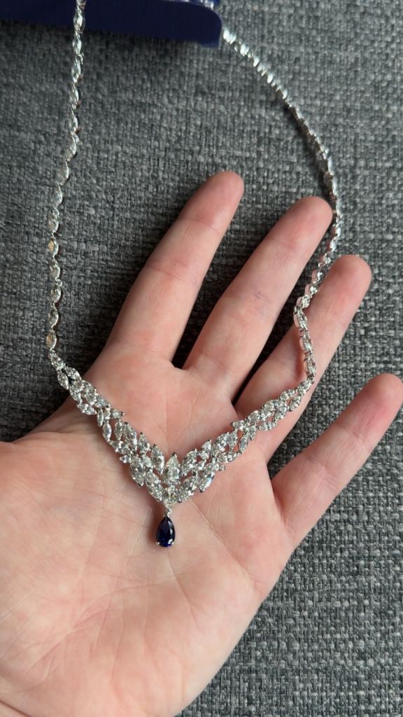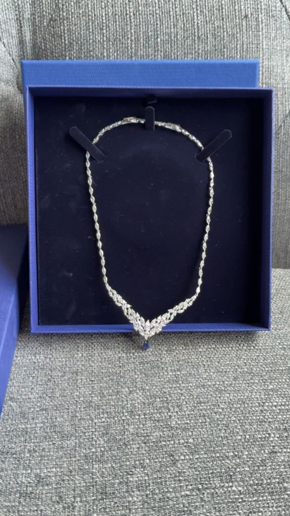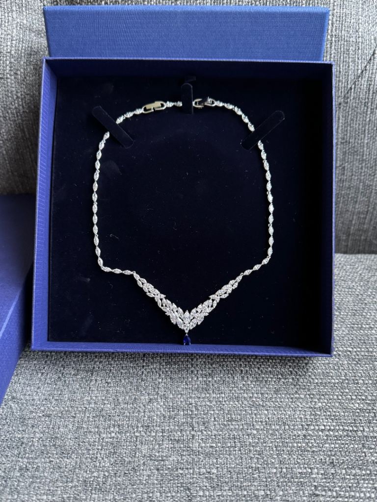 Genuine swarovski necklace, brand new. Bought it for my wedding but didn’t suit my dress so never wore it. Comes with extension link and a pouch for the link, in it’s original box. Ideal for balls and weddings.
