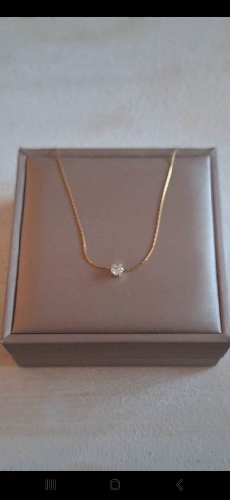 Comes with a matching gold-tone mesh chain and lobster clasp.