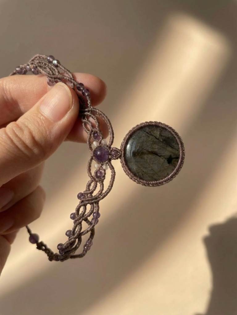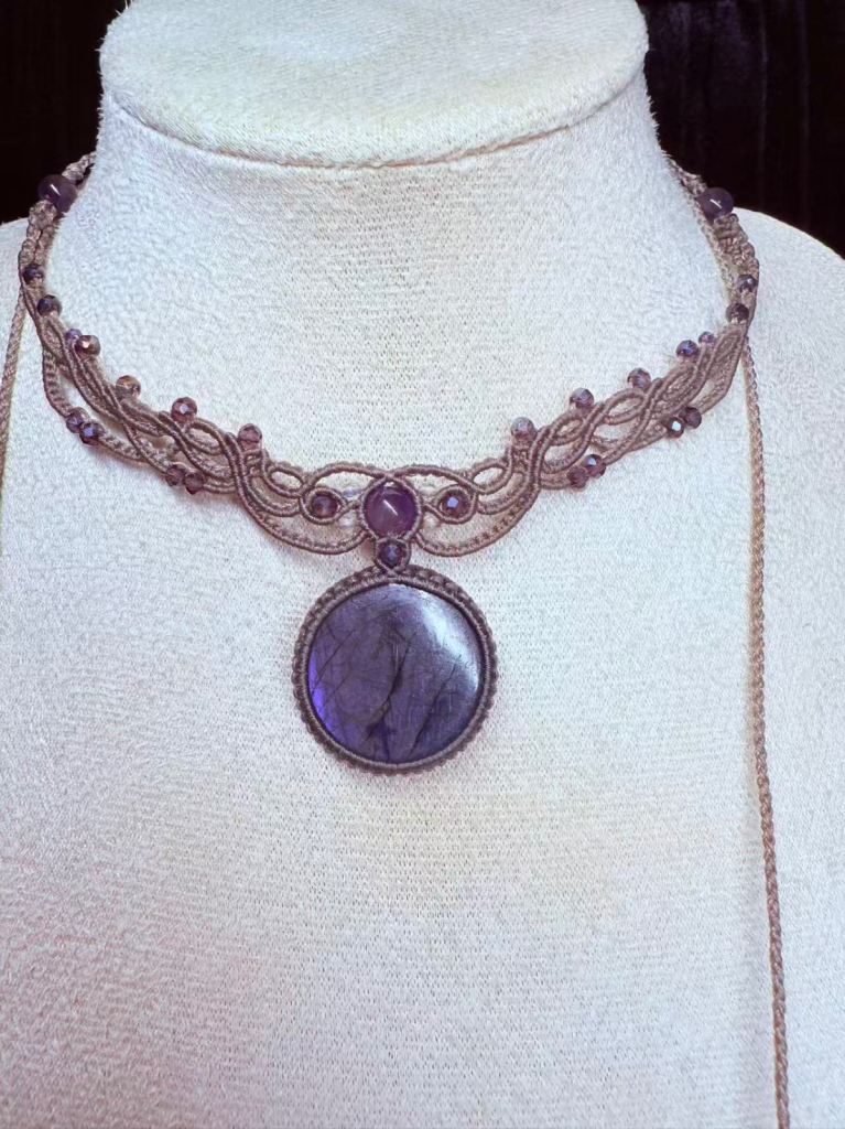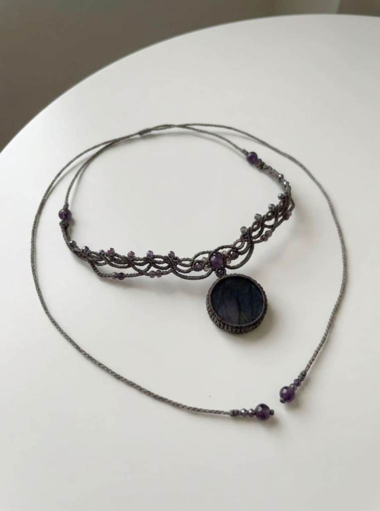 This handcrafted choker features a mesmerising purple labradorite as its centrepiece.