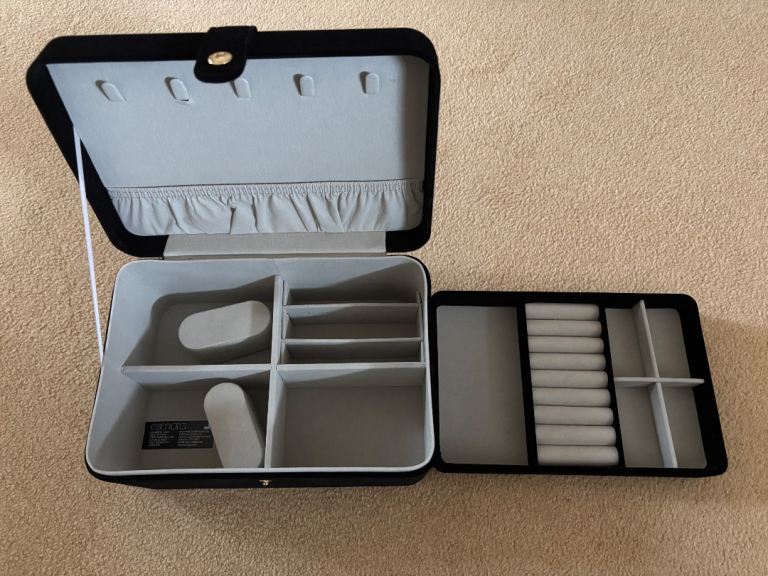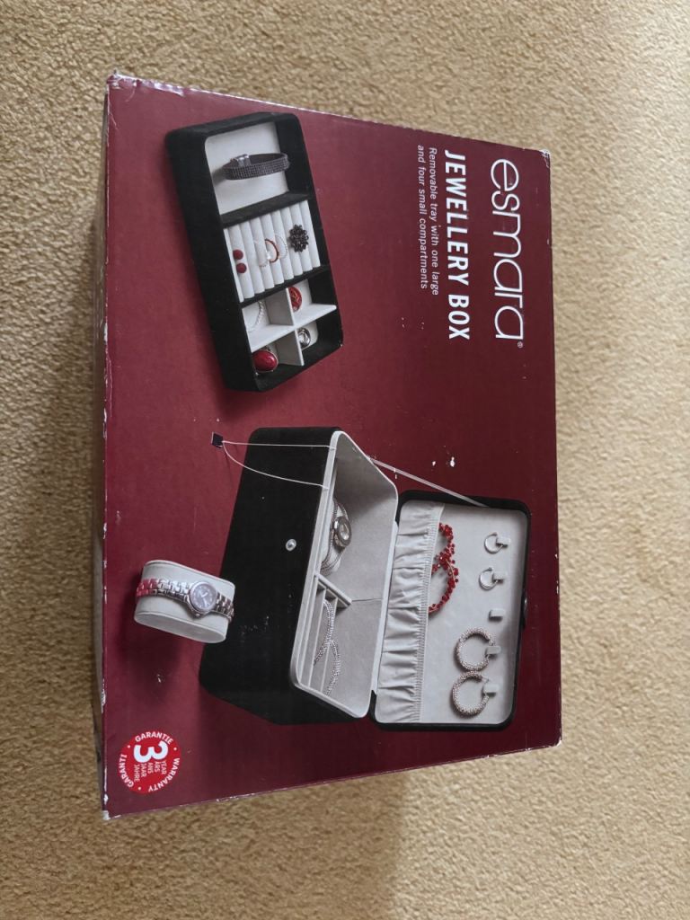 Brand new jewellery box, has not been used. I have taken it out of the box but not used it. Made of polyester but has a velvet feel to the top and sides. Collection Dereham, cash only. Thank you