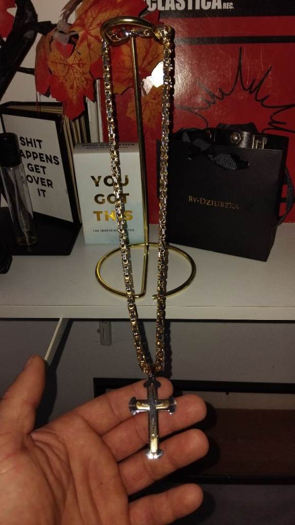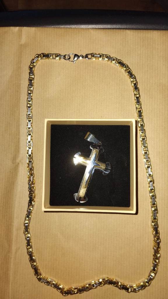 Men's Cross Pendant Necklace, Stainless Steel Silver Color Cuban Link Chain