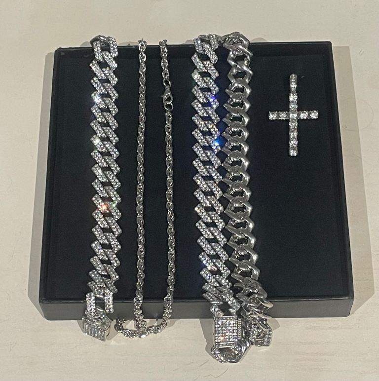 SPARKLING PIECE WITH A GOLD CHAIN.