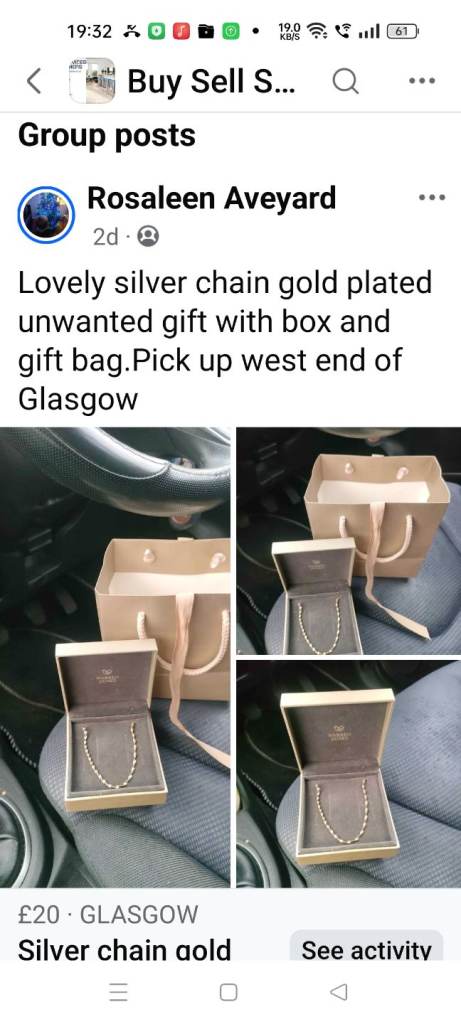 Lovely boxed silver,,925 gold plated chain unwanted gift pick up west end of Glasgow or may post