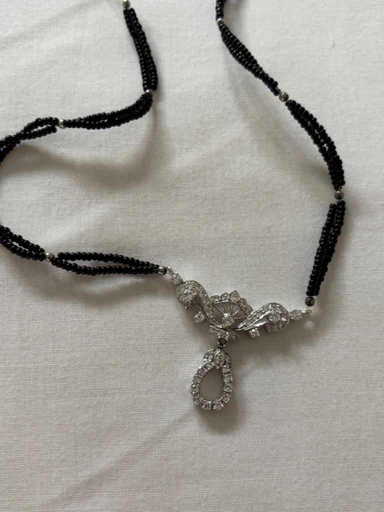 Silver necklace and earrings set from Warren James