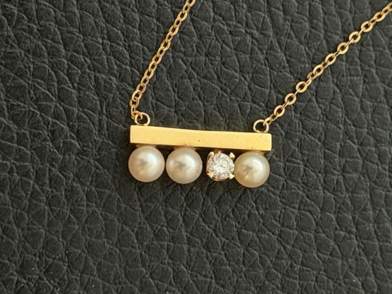 TASAKI AU750 18K Yellow Gold Diamond and Akoya pearl Necklace 0.129ct – Pre-Owned, (unwanted gift) No Box