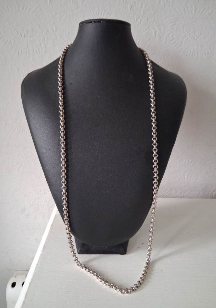 A vintage hallmarked Sheffield Rolo or Belcher chain which is just under 30 inches and weighs 57 grams.