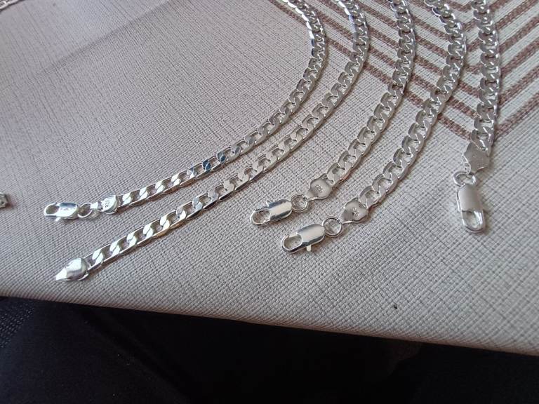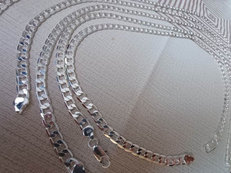Set of 5 silver plated chains each length 22 inches width 8 mm weight 24 grams in total 120 grams all marked 925 offer welcome