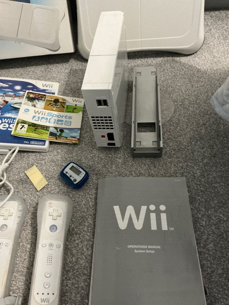 Vintage Wii set with accessories, it has been stored for a long time and wasn’t used much so in good clean condition. It has not been set up recently.