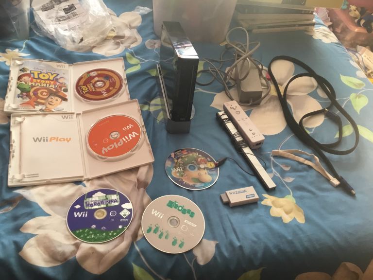 Wii console bundle 5 games Toy Story mania,Wii play these games are boxed with instructions.super Mario galaxy 2,kororinpa,eledees these games are disc only.also comes with power supply,hdmi adapter and hdmi lead,Wii remote all tested in working order.