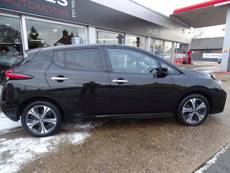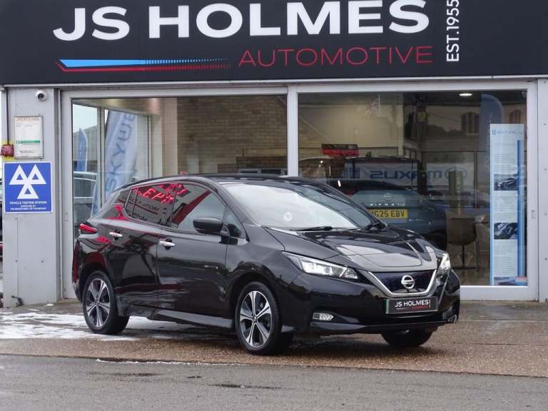 This 2021 Nissan Leaf e+ Tekna is a superb example, having had only one owner since new. As an electric vehicle, it boasts a substantial 62 kWh battery, offering a maximum range of 239 miles when new. Charging at home on a 7kW charger takes approximately 11 hours and 30 minutes for a full charge, while rapid public charging can take you from empty to 80% in just 2 hours. This model comes equipped with a comprehensive suite of notable features, including Blind Spot Warning and Intervention with BLIS Blind Spot Assistance, a Heat Pack for cosy journeys with heated seats and steering wheel, a full LED Pack for enhanced visibility, and automatic air conditioning with climate control for optimal comfort.? FREE Delivery Within 100 Miles Full Distance Selling Available Click & CollectWhy Buy from J.S. Holmes?Nissan Global award winners 24, Driver And Passenger Airbags, Immobiliser, Leather Steering Wheel, Rain Sensor, Rear Head Restraints, Rear Wiper, Remote Central Locking, Traction Control, Trip Computer, Height Adjustable Front Seatbelts, Deadlock, Rear Heater Duct, Side Airbags, 17"" Alloy Wheels, 17"" Alloy Wheels, 3 Point Front Seatbelts With Pre-tensioners, Speed Sensitive Power Steering, Push Button Starter, Chrome Door Handles, Auto Dimming Rear View Mirror, VDC Dynamic Vehicle Control, Front Head Restraints, Voice Control System, Electric Front/rear Windows, Front Seatback Pockets, Rear Privacy Glass, Automatic Activation Of Hazard Warning Lights, Curtain Airbags, Tyre Pressure Monitoring System, Bose Premium Audio System+7 Speakers, Thatcham Cat.1 Alarm, PTC (Positive Temp Co-efficent) Heater, PTC (Positive Temp Co-efficent) Heater, Automatic Rain Sensing Wipers, Hill Start Assist, Front Seatbelt Pretensioners + Load Limiters, Manual Adjust Driver/passenger Seats, 3x3 Point Rear Seatbelts, Follow Me Home Headlights, Lane Departure Warning System, 60/40 Split Folding Rear Seat, Seatbelt Reminder For Driver And Front Passenger, 12V Socket, USB Port, Speed Limiter, Telematics System, High Beam Assist, Body Colour Mirror Caps, Rear Assist Grips, Aux-in Socket, Electrically Adjustable And Folding Door Mirrors, Intelligent Cruise Control (ICC), EVSE Charging Cable, EVSE Charging Cable, Gloss Black Finish B Pillar, Rear Cross Traffic Alert, Quick Charge Port, Heat Pump, 3 Seat Bench In 2nd Row, Apple Car Play/Android Auto, Shark Fin Antenna, Intelligent Emergency Braking With Pedestrian Recognition, LED Third Brake Light, Blind Spot Warning, Intelligent Auto Headlights, Height Adjustable Driver Seat, Intelligent Lane Intervention, Two Rear USB Sockets, Two Rear USB Sockets, ECall Emergency Call System, ECall Emergency Call System, ECall Emergency Call System, E Pedal, Tech Pack - Leaf, Intelligent Trace Control, 7"" Combimeter, 6.6 Kw On-board Charger, 6.6 Kw On-board Charger, Metallic Blue Rear Bumper Accent, LED Tail Light Signature, Illuminated Charge Port, Illuminated Charge Port, Isofix Child Seat Anchor Points, Isofix Child Seat Anchor Points, LED Signature Daytime Running Lights, LED Signature Daytime Running Lights, E+ Embossed Charging Port, E+ Embossed Charging Port, Remote Audio Control, Remote Audio Control, AM/FM/DAB Audio System, Automatic Air Conditioning With Timer And Heater, Pro Pilot Pack - Leaf, LED Pack - Leaf, Heat Pack - LEAF, Nissan I-key, Front Centre Console And Armrest, Front Centre Console And Armrest, Blind Spot Intervention, 6.6 KW Onboard Charger, 6.6 KW Onboard Charger, Integrated Turn Signals In Mirrors, Manual Child Proof Rear Door Locks, 100kW Quick Charger Capacity, Rake And Reach Adjustable Steering Column, Leather/ultra Suede Upholstery, 8"" Touchscreen Navigation And Entertainment System, Nissan Connect Services With Nav, Single Front Passenger Seat, Rear Side Wing Doors