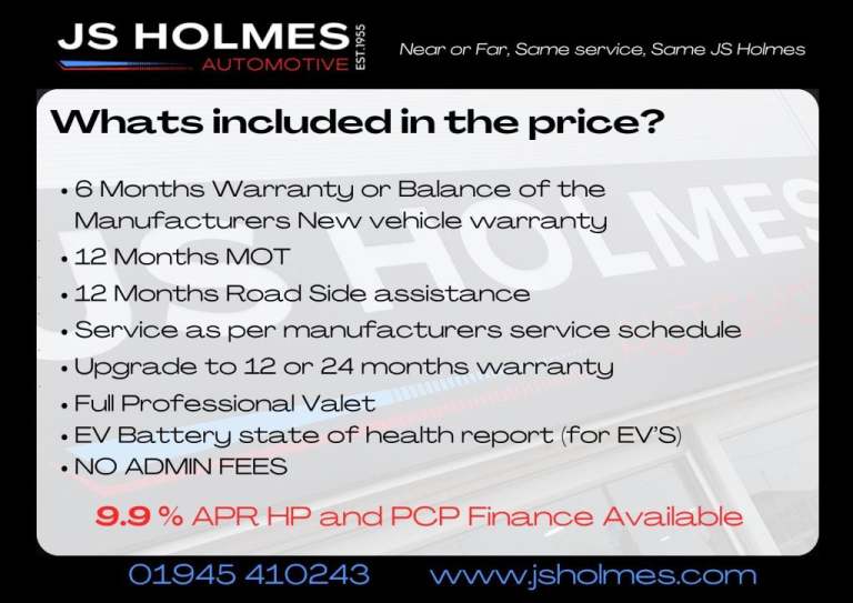 **PLEASE NOTE there are no hidden costs in our advertised price, we will NOT charge you for any of the following....ADMIN Fee, Car preparation Fee, Doc Fee, Administration fees. EV Specific Warranty: Comes with a 6-month warranty as standard, with options to upgrade to 12 or 24 months. Includes a 12-month MOT and thorough servicing, valeting, and sanitization.