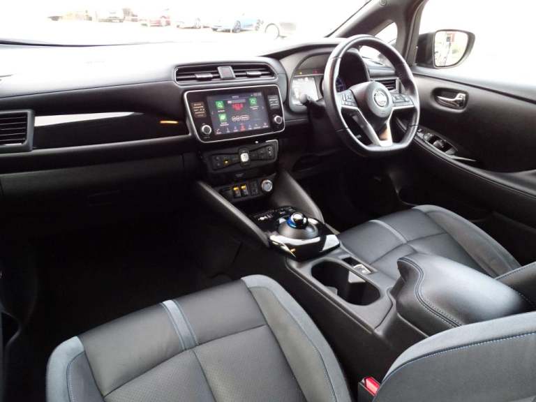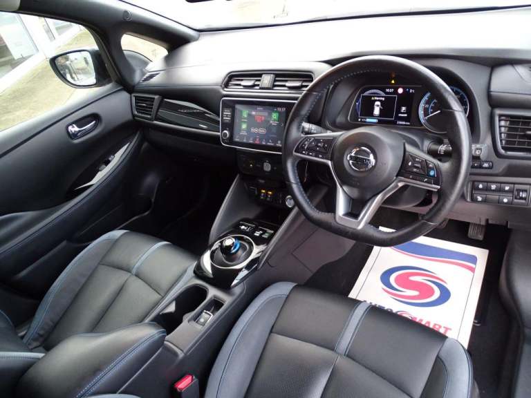 This 2021 Nissan Leaf e+ Tekna presents an exceptional ownership opportunity with only one previous owner and a remarkably low mileage of 23,834 miles. As an electric vehicle, it boasts a substantial 62 kWh battery, offering a maximum range of 239 miles when new. Charging is convenient, with a full charge at home taking approximately 11 hours and 30 minutes using a 7kW charger, while rapid public charging can take you from empty to 80% in just 2 hours. This Tekna trim is well equipped, featuring the Tech Pack with a 360 degree camera and front and rear parking sensors for effortless manoeuvring. The Heat Pack ensures comfort with heated seats and a heated steering wheel, complemented by automatic air conditioning. For an enhanced driving experience, it includes a BOSE Premium Audio System with 7 speakers and Blind Spot Warning technology.The performance of this Nissan Leaf e+ Tekna is a key highlight, with an impressive acceleration of 0-62mph achieved in just 6.9 seconds, demonstrating its responsive electric power. This quick acceleration sets it apart from many other vehicles in its class. Furthermore, the generous boot space provides ample practicality for everyday needs and longer journeys. ? FREE Delivery Within 100 Miles Full Distance Selling Available Click & CollectWhy Buy from J.S. Holmes?Nissan Global award winners 24, Driver And Passenger Airbags, Immobiliser, Leather Steering Wheel, Rain Sensor, Rear Head Restraints, Rear Wiper, Remote Central Locking, Traction Control, Trip Computer, Height Adjustable Front Seatbelts, Deadlock, Rear Heater Duct, Side Airbags, 17"" Alloy Wheels, 17"" Alloy Wheels, 3 Point Front Seatbelts With Pre-tensioners, Speed Sensitive Power Steering, Push Button Starter, Chrome Door Handles, Auto Dimming Rear View Mirror, VDC Dynamic Vehicle Control, Front Head Restraints, Voice Control System, Electric Front/rear Windows, Front Seatback Pockets, Rear Privacy Glass, Automatic Activation Of Hazard Warning Lights, Curtain Airbags, Tyre Pressure Monitoring System, Bose Premium Audio System+7 Speakers, Thatcham Cat.1 Alarm, PTC (Positive Temp Co-efficent) Heater, PTC (Positive Temp Co-efficent) Heater, Automatic Rain Sensing Wipers, Hill Start Assist, Front Seatbelt Pretensioners + Load Limiters, Manual Adjust Driver/passenger Seats, 3x3 Point Rear Seatbelts, Follow Me Home Headlights, Lane Departure Warning System, 60/40 Split Folding Rear Seat, Seatbelt Reminder For Driver And Front Passenger, 12V Socket, USB Port, Speed Limiter, Telematics System, High Beam Assist, Body Colour Mirror Caps, Rear Assist Grips, Aux-in Socket, Electrically Adjustable And Folding Door Mirrors, Intelligent Cruise Control (ICC), EVSE Charging Cable, EVSE Charging Cable, Gloss Black Finish B Pillar, Rear Cross Traffic Alert, Quick Charge Port, Heat Pump, 3 Seat Bench In 2nd Row, Apple Car Play/Android Auto, Shark Fin Antenna, Intelligent Emergency Braking With Pedestrian Recognition, LED Third Brake Light, Blind Spot Warning, Intelligent Auto Headlights, Height Adjustable Driver Seat, Intelligent Lane Intervention, Two Rear USB Sockets, Two Rear USB Sockets, ECall Emergency Call System, ECall Emergency Call System, ECall Emergency Call System, E Pedal, Tech Pack - Leaf, Intelligent Trace Control, 7"" Combimeter, 6.6 Kw On-board Charger, 6.6 Kw On-board Charger, Metallic Blue Rear Bumper Accent, LED Tail Light Signature, Illuminated Charge Port, Illuminated Charge Port, Isofix Child Seat Anchor Points, Isofix Child Seat Anchor Points, LED Signature Daytime Running Lights, LED Signature Daytime Running Lights, E+ Embossed Charging Port, E+ Embossed Charging Port, Remote Audio Control, Remote Audio Control, AM/FM/DAB Audio System, Automatic Air Conditioning With Timer And Heater, Pro Pilot Pack - Leaf, LED Pack - Leaf, Heat Pack - LEAF, Nissan I-key, Front Centre Console And Armrest, Front Centre Console And Armrest, Blind Spot Intervention, 6.6 KW Onboard Charger, 6.6 KW Onboard Charger, Integrated Turn Signals In Mirrors, Manual Child Proof Rear Door Locks, 100kW Quick Charger Capacity, Rake And Reach Adjustable Steering Column, Leather/ultra Suede Upholstery, 8"" Touchscreen Navigation And Entertainment System, Nissan Connect Services With Nav, Single Front Passenger Seat, Rear Side Wing Doors