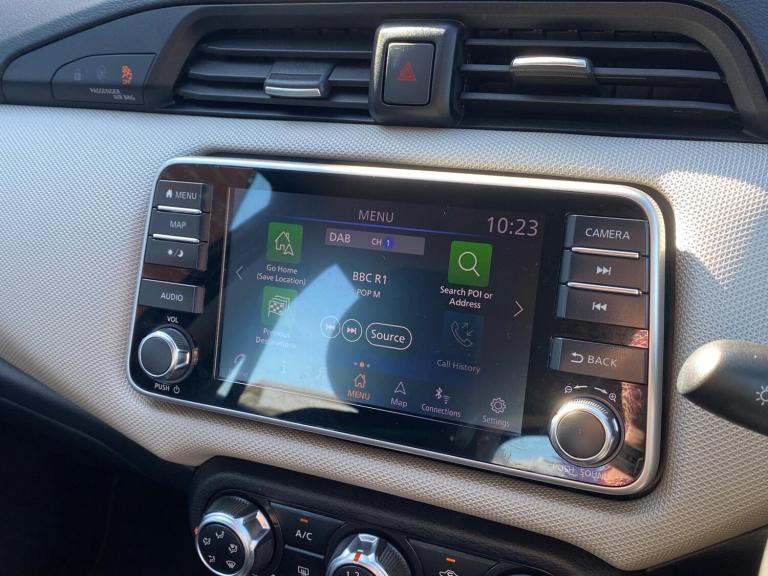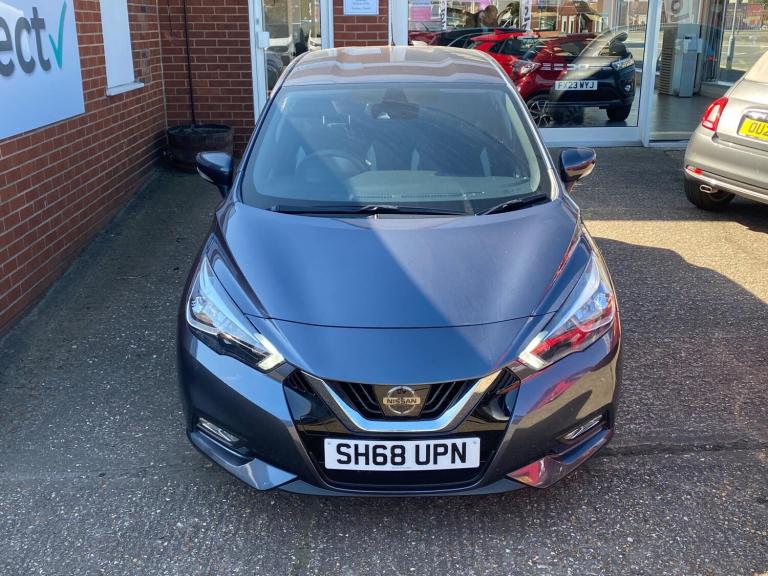 This 2018 Nissan Micra IG Acenta boasts exceptionally low mileage for its age, having covered just 20,457 miles. This Euro 6 compliant 1.0 litre petrol model comes in the Acenta trim and offers a range of convenient features. Stay connected on the go with Bluetooth connectivity and smartphone app integration, including Apple CarPlay. For your comfort, it is equipped with manual air conditioning, and automatic headlights ensure you always have optimal visibility.The very low mileage on this Nissan Micra IG Acenta is a significant highlight, indicating less wear and tear compared to other vehicles of the same age. Furthermore, its placement in a low insurance group means that running costs are likely to be more affordable, making it an attractive option for many drivers. This combination of low mileage, economical engine, and cost saving features makes this Micra a sensible choice.