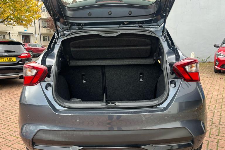 Presented in an attractive grey finish this used 2020 Nissan Micra N Tec automatic hatchback is a practical five-door choice with room for five passengers. Registered in March 2020 it offers a balance of style and efficiency delivering a combined fuel economy of 45.6 mpg from its 1.0-litre petrol engine and is capable of reaching speeds up to 121 mph. The generous boot space—300 litres with the seats up and expanding to 1004 litres when folded—makes this Micra a versatile companion for daily commuting or weekend outings. Notable features include striking 17-inch alloy wheels and advanced touches such as rear parking sensors a rear view camera and smartphone app integration helping to make every drive more enjoyable and convenient. With ULEZ compliance for peace of mind in city zones and having had only two previous keepers this Micra is ready for its next chapter.