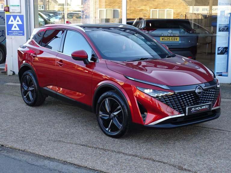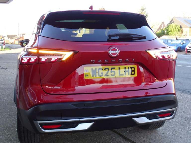 Boasting an exceptionally low mileage of just 1000 miles for its 2025 registration, this Nissan Qashqai DIG-T Tekna represents a remarkable find. This single owner vehicle, finished in the desirable Tekna trim, is powered by an efficient 1.3L Petrol Hybrid engine and meets the Euro 6 emission standards. It comes equipped with the convenience of Intelligent Key with keyless entry, a wireless charging pad for your phone, and sophisticated LED headlights featuring adaptive driving beam technology for optimal visibility.Further enhancing your driving experience, this Qashqai includes a heated steering wheel for comfort on colder days and intelligent auto headlights that adjust automatically. The generous boot space offers practicality for all your needs, making it a versatile choice. These features, combined with its minimal mileage and single ownership, clearly set this Qashqai apart from other vehicles in its class, offering a near new experience with significant advantages., Driver And Passenger Airbags, Engine Immobiliser, Heated Front Seats, Limited Slip Differential, Trip Computer, Height Adjustable Front Seatbelts, 6 Speakers, Passenger Seat Back Pocket, Rear Roof Spoiler, Height Adjustable Front Headrests, Driver Seat Back Pocket, Bodyside Mouldings, Front Cupholders, Chrome Interior Door Handles, Heated Steering Wheel, 3 Rear Headrests, Rear Privacy Glass, Silver Roof Rails, Tyre Pressure Monitoring System, Tilt/telescopic Adjustable Steering Wheel, Hill Start Assist, Front Seatbelt Pretensioners + Load Limiters, Height Adjustable Passenger Seat, Child Locks On Rear Doors, Tyre Puncture Repair Kit, Electric Speed Sensitive Power Steering, Driver And Passenger Sunvisors With Illuminated Vanity Mirrors, Follow Me Home Headlights, Lane Departure Warning System, Engine Start/stop Button, Steering Wheel Gearshift Paddles, One Touch Passenger Window, LED Daytime Running Lights, Front And Rear Parking Sensors, High Beam Assist, LED Rear Lights, Body Colour Mirror Caps, Bluetooth Audio Streaming, Intelligent Cruise Control (ICC), Multifunction Steering Wheel, Dark Headlining, Rear Cross Traffic Alert, Autonomous Emergency Braking, Autonomous Emergency Braking, Hands Free Power Tailgate, Hands Free Power Tailgate, Intelligent Speed Assist, Body Coloured Door Handles, Shark Fin Antenna, 19"" Diamond Cut Alloy Wheels, Blind Spot Warning, Outside Temperature Sensor, Outside Temperature Sensor, Intelligent Auto Headlights, Reverse Tilting Door Mirrors, Electrically Adjustable Driver Seat, Thermaclear Heated Windscreen, Intelligent Lane Intervention, Intelligent Driver Alert System, Wireless Charging Pad, Wireless Charging Pad, Wireless Charging Pad, 60/40 Split Folding Rear Seat Bench, Rain Sensing Wipers, Auto Dimming Frameless Rear View Mirror, Auto Dimming Frameless Rear View Mirror, Driver, Passenger And 2nd Row Rear Seat Belt Reminder, Driver, Passenger And Rear Seat Belt Reminder, Traffic Jam Pilot, ABS With EBD And Brake Assist, Front Centre Console And Armrest, Front Centre Console And Armrest, Thatcham Alarm, Thatcham Alarm, Electric Handbrake With Auto Hold Function, Electric Handbrake With Auto Hold Function, Emergency And Breakdown Call, Rear Door Bottle Holders, Luggage Space Lighting, Two Rear Isofix Child Seat Anchorage Points With Top Tether, LED 3rd Brake Light, LED 3rd Brake Light, Idle Stop/start System, Luggage Board System, Splash Free Rain Sensing Wipers, Auto Rear Wiper When Reversing, One Touch Front And Rear Electric Windows With Remote Opening And Closing, Super UV And Infrared Cut Glass, Vehicle Dynamic Control, Vehicle Dynamic Control, Intelligent Rear Automatic Braking, Intelligent Blind Spot Intervention, Traffic Sign Recognition With Legal Speed Adjustment, Intelligent Forward Collision Warning, Drive Modes (sport, Normal, Eco), Drive Modes (sport, Normal, Eco), Remote Control Services - Door Locks, Lights, Horn And Car Locator, Advanced Windscreen Head Up Display, Full Digital 12.3"" TFT Digital Combimeter, Full Digital 12.3"" TFT Digital Combimeter, Electrically Adjustable And Heated Door Mirrors With LED Turn Indicator, Electrically Adjustable And Heated Door Mirrors With LED Turn Indicator, Electric Auto Folding Door Mirrors, Partially Body Coloured Bumpers, Chrome Side Window Finisher, Rear Styling Plate, LED Headlights With Adaptive Driving Beam, LED Headlights With Adaptive Driving Beam, Dual Zone Automatic Climate Control With Pollen Filter, 12v Power Socket In Dashboard And Luggage, Front Door With Bottle Holders, Curtain And Front Side, Far Side Airbags, 3x3 Point Rear Seatbelt Pretensioners + Load Limiters, AM/FM Audio System With DAB, Remote Central Door Locking With Deadlocking, Emergency Lane Keep Assist, Emergency Lane Keep Assist, Emergency Lane Keep Assist, Electrically Adjustable Lumbar Support For Driver, Electrically Adjustable Lumbar Support For Driver, Smooth Leather Steering Wheel, Smooth Leather Steering Wheel, Single Front Passenger Seat, Rear Side Wing Doors, 3