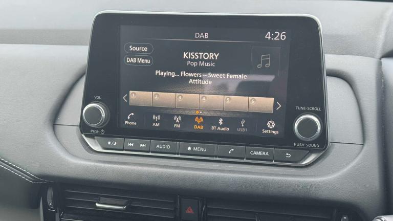 Intelligent Cruise Control, Rear Parking Sensors, Wired Apple CarPlay, 12v Power Sockets in Dash and Luggage Space, 6 Speakers, 7in High Definition Full Colour TFT Screen Combimeter, AM-FM Audio System with DAB, Active Brake Limited Slip, Blind spot warning, Bluetooth with Audio Streaming, Drive Modes - Sport-Normal-Eco, Electric Speed-Sensitive Power Steering, Emergency and Breakdown Call, Follow Me Home Headlights, Front USB Connections - Type A and Type C, Headlights - High Beam Assist, Headlights - LED, Intelligent Auto Headlight, Intelligent Blind Spot Intervention, Intelligent Driver Alertness, Intelligent Forward Collision Warning, LED Daytime Running Lights, LED rear lights, Lane Departure Prevention, Lane Departure Warning, Maximum Speed Limiter, Nissan Connect 8in Touchscreen Infotainment System, Rear Reversing Light - Bulb, Rear View Camera, Shark Fin Antenna, TPMS - Tyre Pressure Monitoring System, Traffic Sign Recognition, Trip Computer, Wired Android Auto, 17in Alloy Wheels, Body Coloured Handles, Body Coloured Mirror Caps, Body Side Moulding, Chrome Side Window Finisher, Door Mirror - Electrically Adjustable - Heated - Auto Folding with LED Turn Indicator, One Touch Front and Rear Electric Windows with Remote Opening-Closing, Partially Body Coloured Bumpers, Puncture Repair Kit, Rear Roof Spoiler, Splash Free Wipers, 3 Rear Headrests, 60-40 Split Rear Folding Seats, Auto Dimming Rear View Mirror, Automatic Dual Zone Climate Control with Pollen Filter, Chrome Interior Door Handles, Driver Seat - 2-way Electric Lumbar, Driver and Passenger Sun Visor with Illuminated Vanity Mirror, Engine Start Button, Front Centre Console and Armrest, Front Cupholders x2, Front Door with Bottle Holders, Height Adjustable Driver Seat, Height Adjustable Front Headrests, Leather Shift Knob, Luggage Space Lighting, Multifunctional Steering Wheel, Passenger Seat Back Pockets, Rain Sensing Wipers, Rear Door with Bottle Holders, Rear Seat Armrest with 2 Cupholders, Seats - Passengers Height Adjustment, Synthetic Leather Steering Wheel., Three Blink Turn Signal, Tilt and Telescopic Adjustable Steering Wheel, 3 x 3-Point Rear Seatbelts, ABS with EBD and Brake Assist, Auto Hold Function, Auto Rear Wiper When Reversing, Curtain Airbags, Driver and Passenger Airbags, Driver-Passenger and Rear Seatbelt Reminder, Electric parking brake, Engine Immobiliser, Front Seat Belts with Load Limiter and Pretensioners, Front Seatbelt Height Adjustment, Hill Start Assist, Intelligent