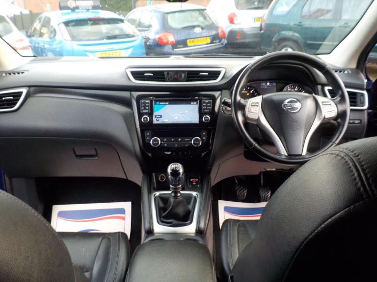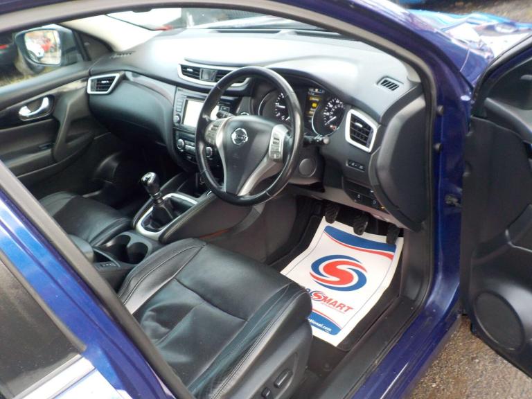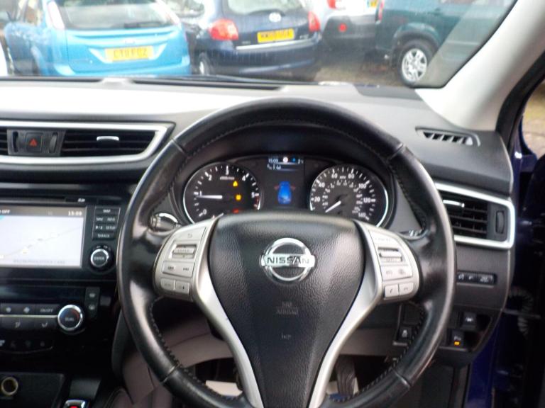 MOT DECEMBER 2026, CHEAP ROAD TAX, ONLY 20 FOR THE YEAR, COMES WITH 2 REMOTE KEYS, EXCELLENT SERVICE HISTORY, COMES WITH 6 SERVICE STAMPS, EXCELLENT CONDITION THROUGHOUT, FINISHED IN METALLIC BLUE, LOOKS STUNNING, 6 SPEED, LOVELY DRIVE, ALL HPI CHECKED AND CLEAR, ALL ORIGINAL SERVICE BOOK/HANDBOOK, FINANCE AVAILABLE, EXTENDED WARRANTY AVAILABLE, PART EXCHANGE WELCOMEThis 2016 Nissan Qashqai dCi Tekna boasts an MOT valid all the way until December 2026, offering you peace of mind for years to come. This Tekna trim model features a 1.5L Diesel Engine that meets Euro 6 emission standards. Inside, you'll find comfort with heated front seats, and convenience is enhanced by Bluetooth integration for seamless phone connectivity. Navigating tight spots is made easier with the Around View Monitor, providing a 360 bird's eye view, while Bi-LED headlights ensure excellent visibility. Safety is also a priority, with Blind Spot Warning systems included.This Qashqai stands out with its impressive fuel economy, achieving a remarkable 71 miles per gallon, which indicates it is more economical than many similar vehicles. Furthermore, its low insurance group rating suggests that running costs will be lower compared to other cars in its class. The low CO2 emissions also highlight its efficiency and environmental consideration, making it a sensible choice for many drivers.WE STRONGLY RECOMMEND AN EARLY VIEWING