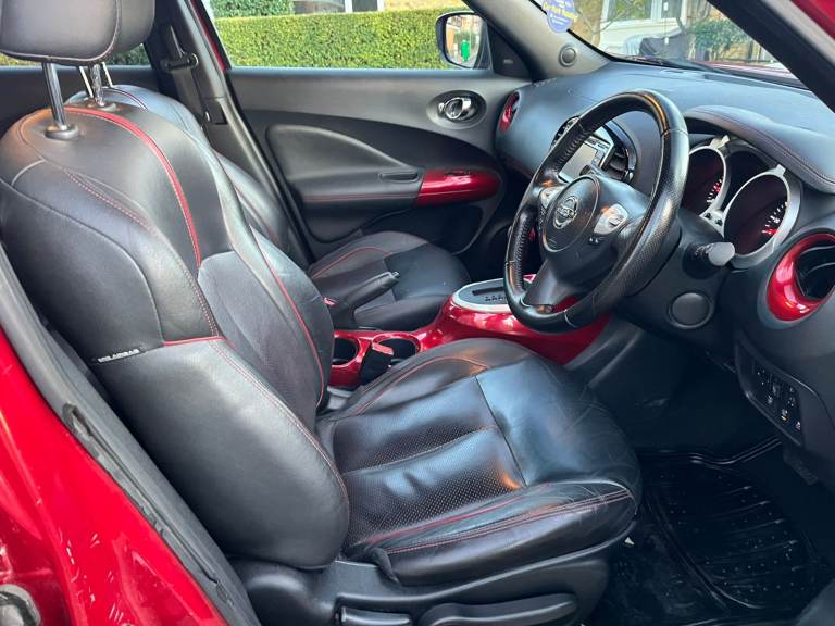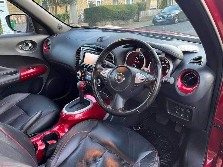 1598 (cc) Nissan JUKE 5 doors Hatchback 2015 Automatic, full leather interior, low miles, ulez compliance, 2 Keepers from new, full service history, mot 30/06/26, rd tax, insured, HPI clear, fully loaded, all electric, all windows front and rear, 2 sets of keys, SAT NAV CD music system with cameras and sensors, blue tooth and many various functions please see image, such as eco/sport/ climate control, etc, alloy wheels and good tyres, adjustable front seats and folding rear seats, big boots and spacious car, tools, remote central locking alarm and immobilizer, this car is been looked after in a regular basis, service up to date, great condition and drive.
