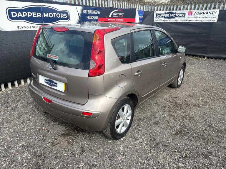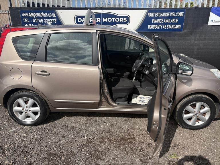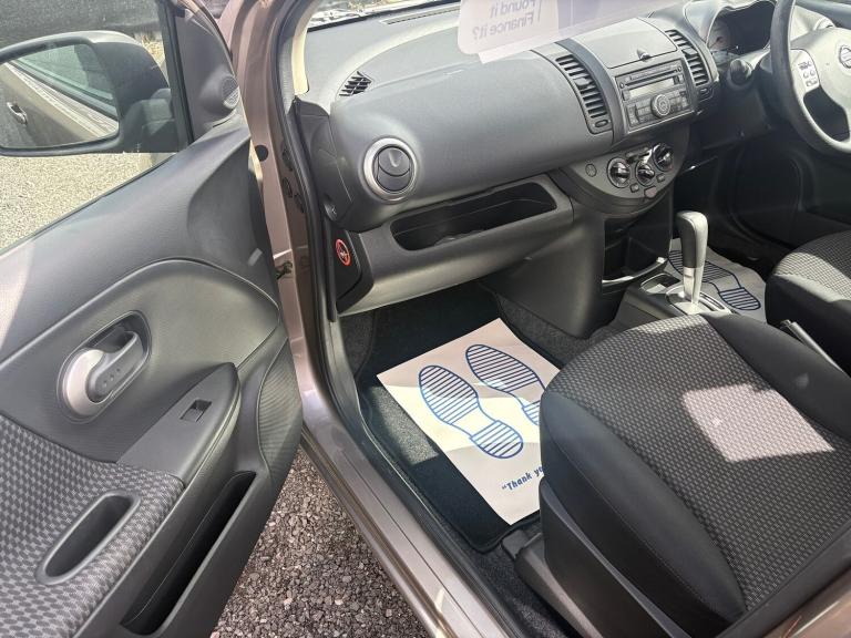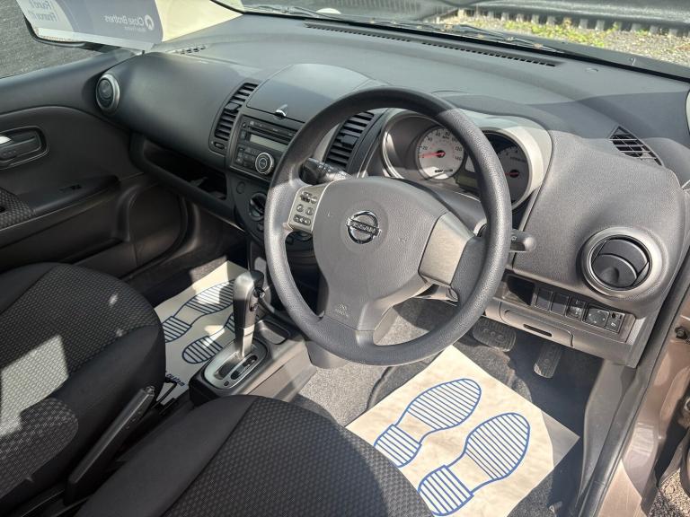 Nissan Note 1.6 16v AUTOMATIC Acenta in excellent condition inside and out, 1 former keeper and ONLY 36K miles, with good service history and stacks of old receipts, runs and drives immaculately. lovely specification with lots of modern touches including remote central locking (2keys), air conditioning, refrigerated glovebox, Bluetooth connectivity, electric windows all round, aux connection port, multifunction steering wheel and alloy wheels. As with all our cars, this vehicle comes with a FRESH 12 MONTH MOT with ALL advisory work completed, fresh oil and filter service, 3 months parts and labour cover as standard and breakdown cover. Part exchange welcome, credit and debit cards accepted, free local delivery (25 miles)VEHICLE REG - CY57 GGZ- COMPETATIVE FINANCE AVAILABLE Click the link below now to try our free finance calculator and personalise the payment options that best work for you![Website URL removed] vehicle comes with:Six speakers, Manufacturers Own RDS audio player with AM/FM and CD player, External temperature, Computer with average speed, average fuel consumption, instantaneous fuel consumption and range for remaining fuel, Luxury trim alloy look on gearknob, Load restraint hooks, Remote central door locking includes boot/hatch, Cloth seat upholstery with additional cloth, Plastic multi-function steering wheel with tilt adjustment, Refrigerated storage compartment glove compartment and ventilated, Below seat storage under passenger seat, Front seat back storage, Ventilation system with air filter, Air conditioning, Front electric windows with one one-touch, rear electric windows, Full dashboard console with covered storage box, full floor console with open storage box, Wireless connection Bluetooth, Rear door lifting gate, Connection to ext.entertainment devices, Driver and passenger electrically adjustable heated partial-painted door mirrors, Space saver steel rim internal spare wheel, Switchable load floor, Single complex surface lens halogen bulb headlights, Front and rear roof airbag, Driver front airbag, passenger front airbag with occupant switch off, Front-wheel drive, 3-way catalytic converter, Multi-point injection fuel system, Vehicle speed proportional power steering electric, Insurance: 5E-T2, Rigid cargo area cover/rear parcel shelf, Power tailgate/boot lock, Adjustable loadspace floorheight