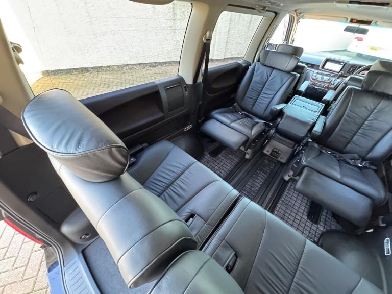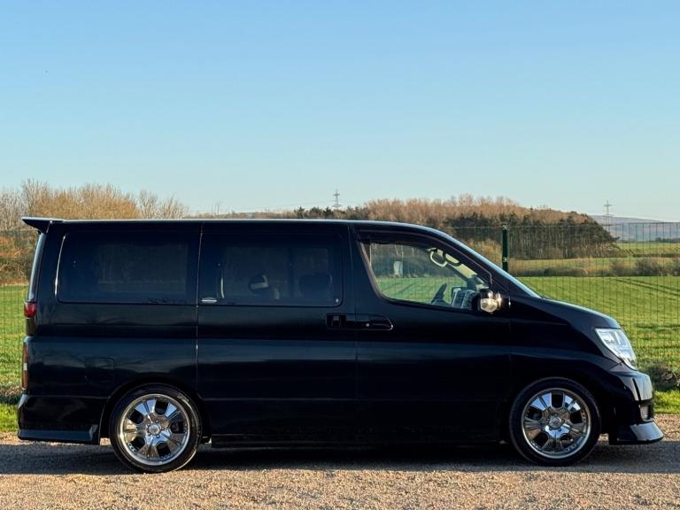 Stock Number ( 265520 ) This is the 2008 Nissan Elgrand 3.5 Highway Star in Mystic Black with Full Black leather limited specification , Twin Power doors and 8 seats . It is a good grade vehicle with only 25000 miles.Ideal if you need a car , a camper ,and a Van but do not have the space or money to run all four types of vehicle , This will do the job of all of them , It even has an up and over rear door to keep you dry and sheltered when working , loading and campingThis vehicle is a dry and fresh import, Meaning little or no rust due to the climate and that the Japanese do not use salt on there roads, we would accept a down payment of intent to secure this vehicle which will reduce the balance to pay on collection or delivery.The advertised prices includes all shipping & Import duties , UK Registration , UK number plates, UK MOT, Oil and filter service, Clear Waxoyl under sealant for protection against UK winters if requested (free of charge including materials), 3 Months UK nationwide warranty. All you need do is tax and insure your vehicle and we can also help with that if you ask .Also your vehicle will be valeted and detailed if any scrapes or dents are apparent when it arrives at our warehouse .With the vast number of people we have in Japan and access to 100'000's of cars we can also offer the service of sourcing , Inspecting and importing a vehicle of your choice, Email or call us with your requirements and we will start to look instantly for you, We take all the hassle and stress from the process and make the car ready to drive away, From being registered in Japan to Registered in The UK for you!Please always call or email before coming to view a vehicle as some of our stock may have a deposit taken, be at the port, On the vessel, In one of our storage yards in Japan or the UK, This way you will not arrive disappointed and we can make the vehicle available for viewing when you do arrive.